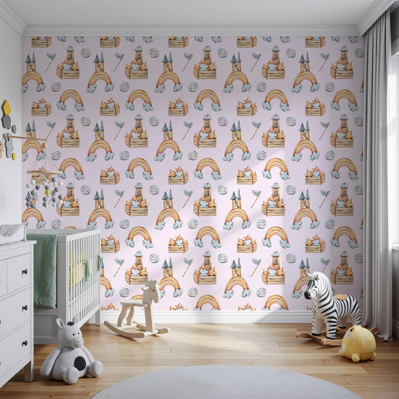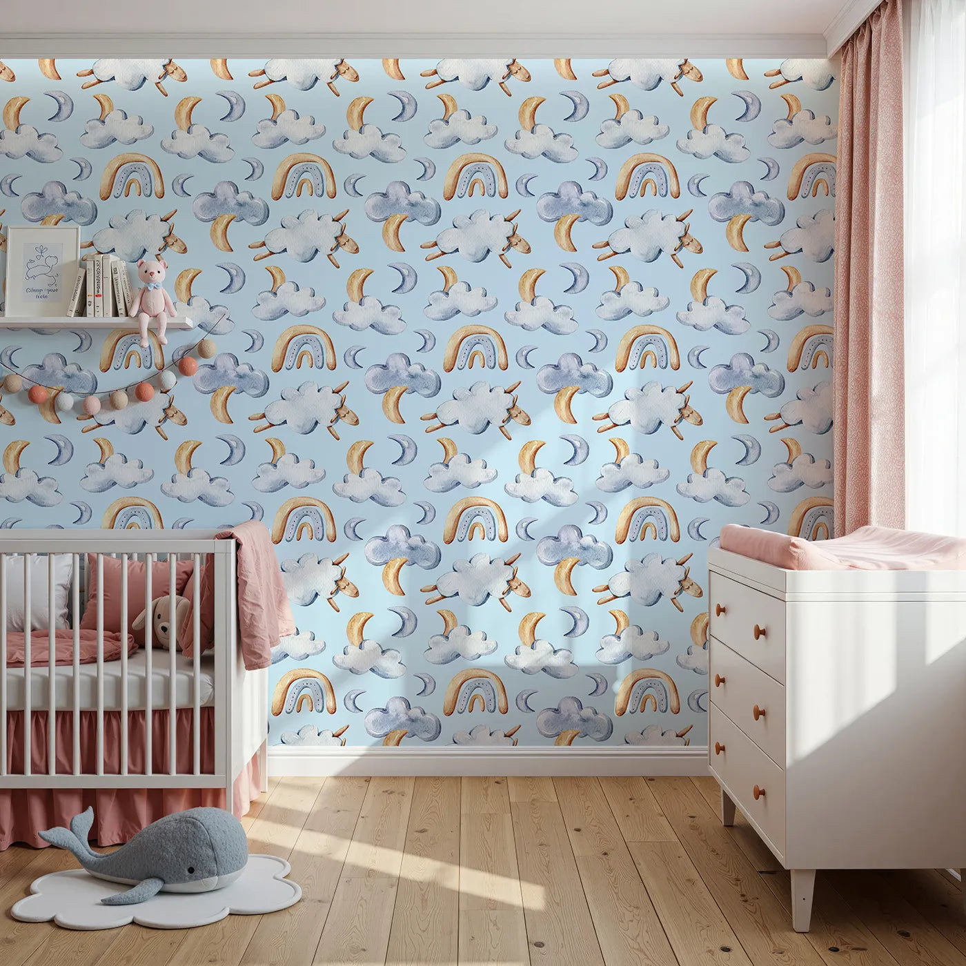 Clouds & Rainbow Wallpaper for Kids & Nursery