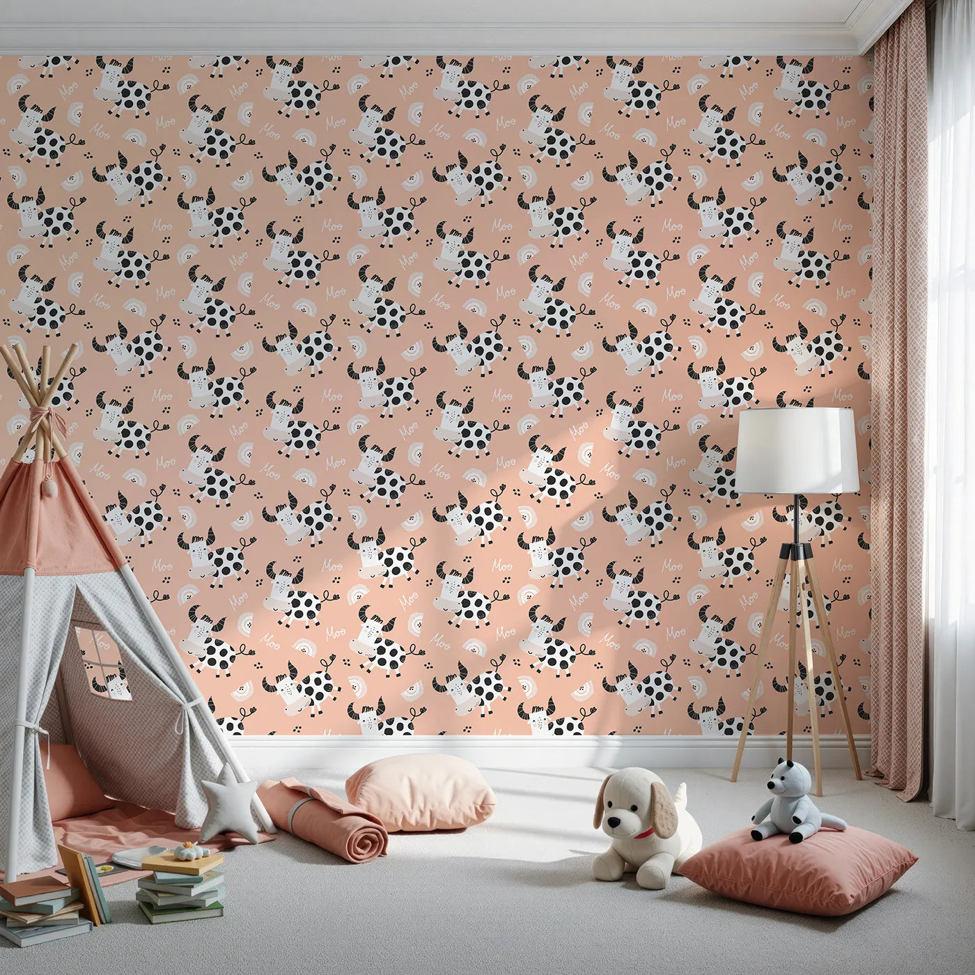 Front view of Whimsy Tots' Moo Moo Love Wallpaper in Pink