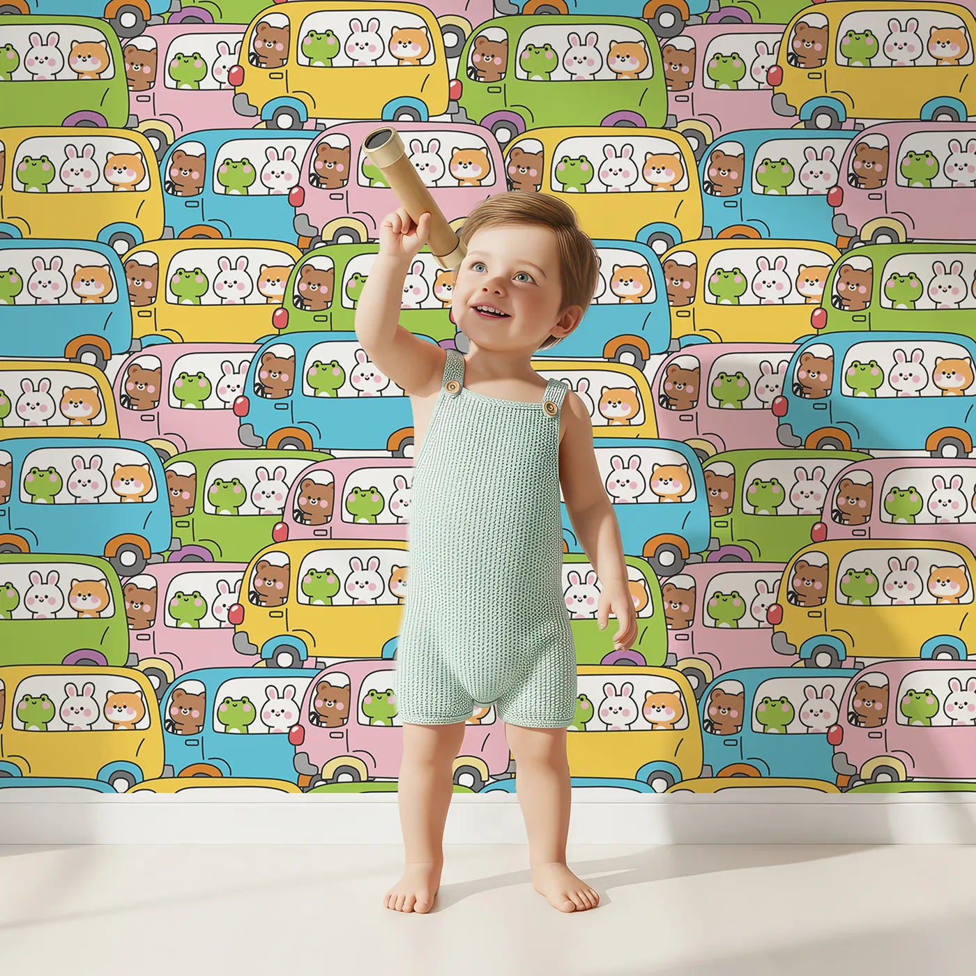 Front view of Whimsy Tots' Animal Bus Buddies Wallpaper