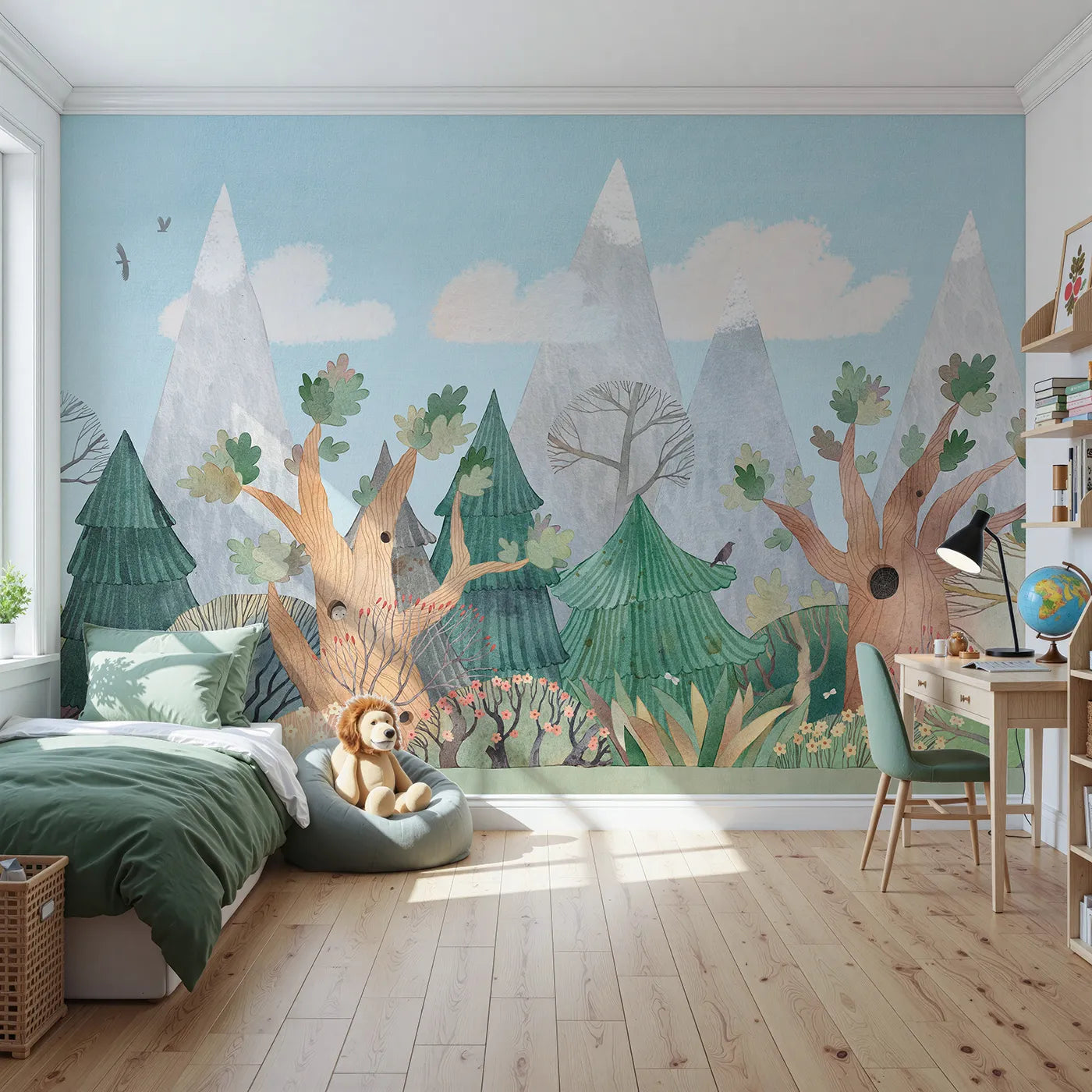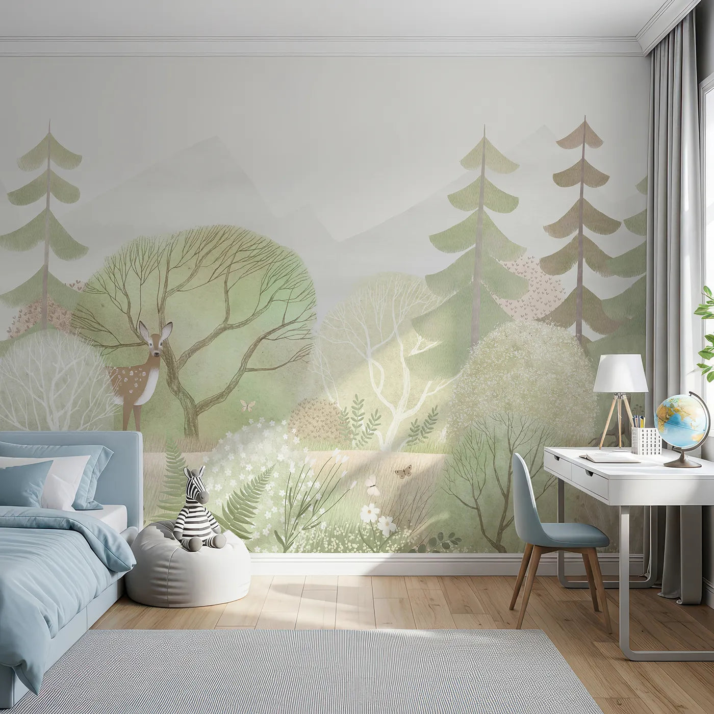 Breathe in the fresh air and bring the gentle beauty of the outdoors inside. Our Floral & Nature collection is a celebration of the earth’s simple wonders, from the first bloom of spring to the quiet majesty of a misty forest. This is where you’ll find walls wrapped in beautiful bouquets, lush canopies of leaves, and serene mountain landscapes. Each design is crafted to create a space that feels calm, nurturing, and deeply connected to nature, providing a peaceful backdrop for your child to grow and dream.