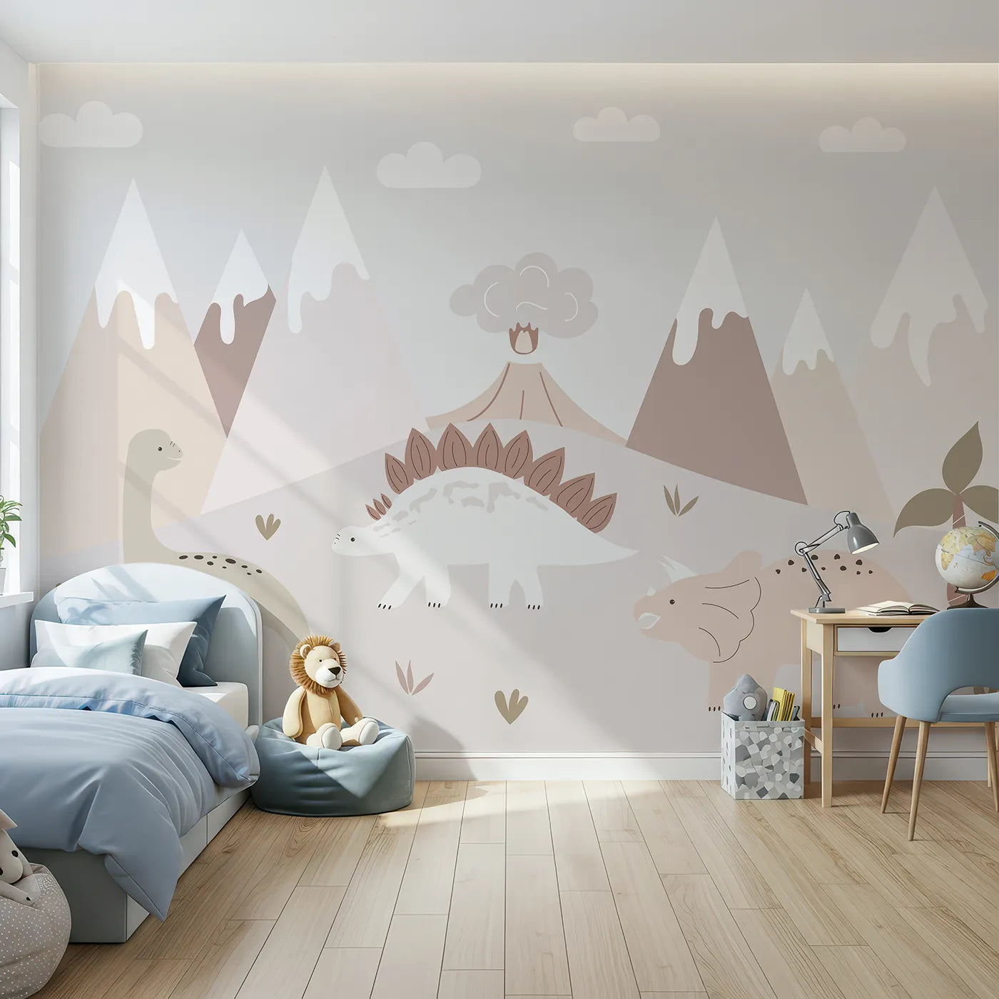 Front view of Whimsy Tots' Neutral Dinosaur Valley Wall Mural