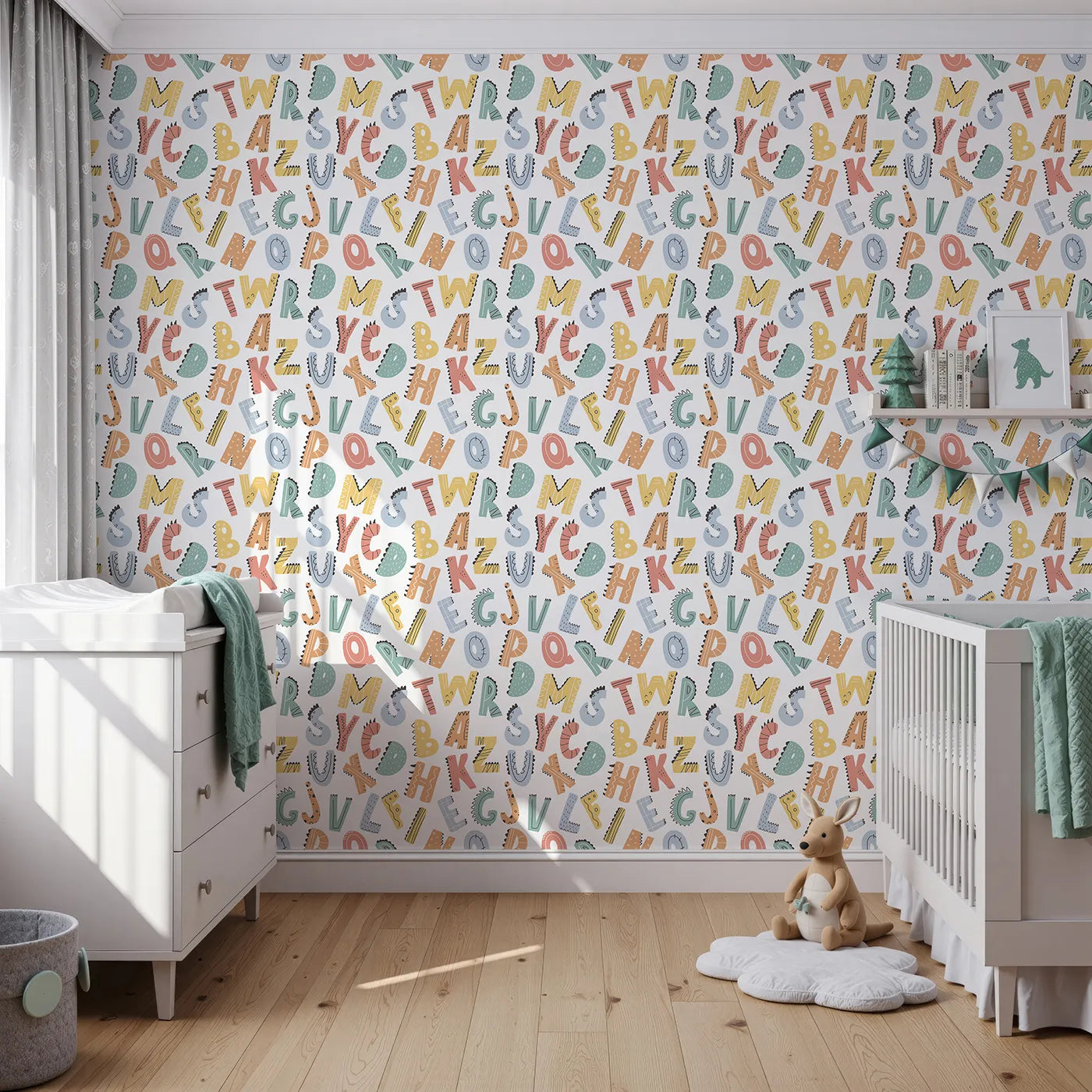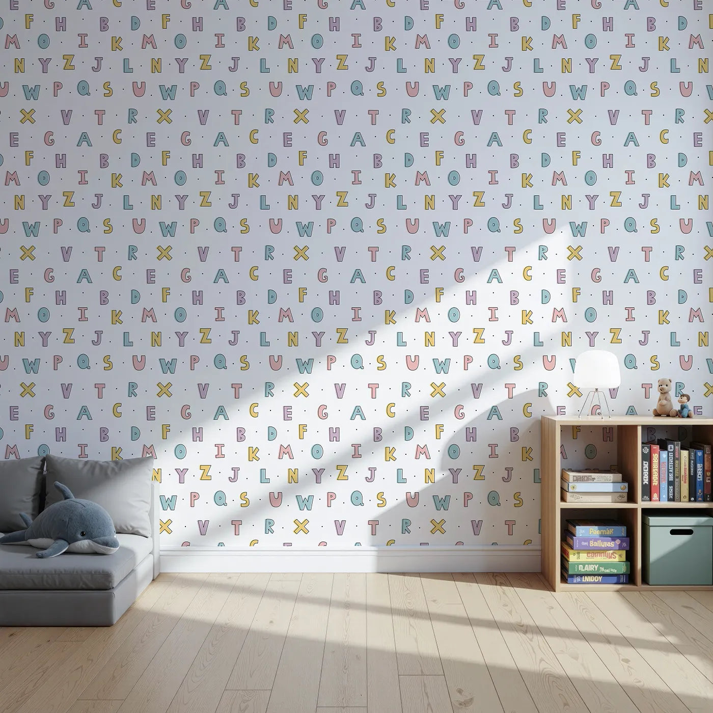 Front view of Whimsy Tots' Colorful Alphabet Scatter Wallpaper