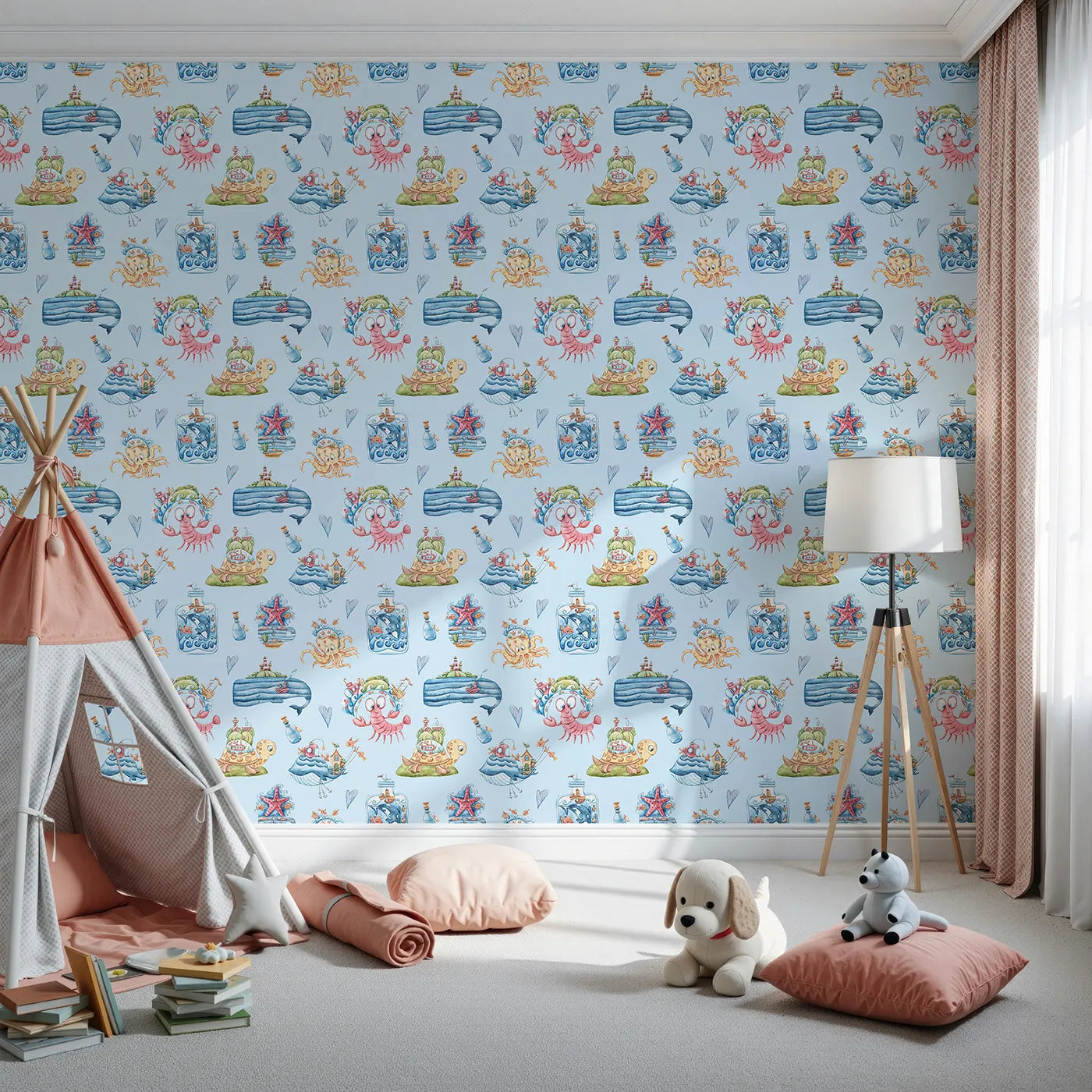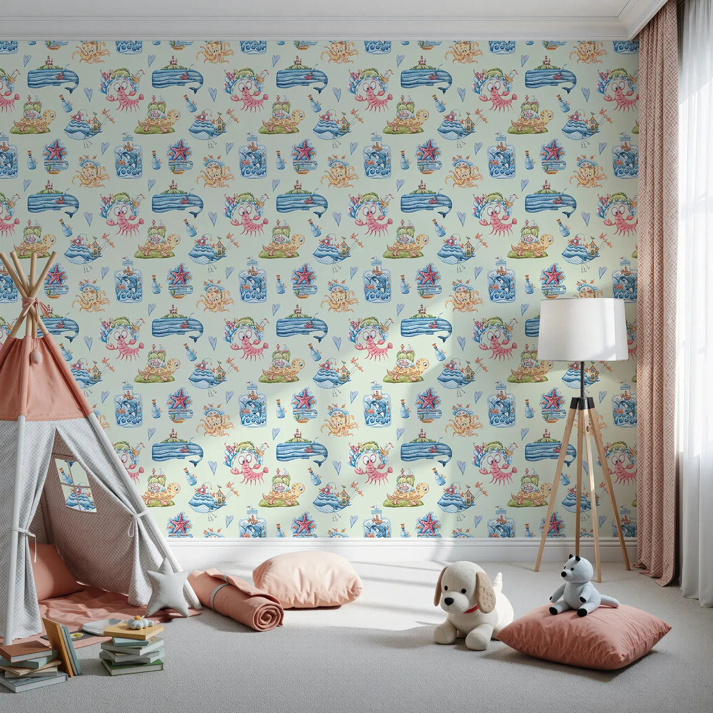 Front view of Whimsy Tots' Ocean Treasures Wallpaper