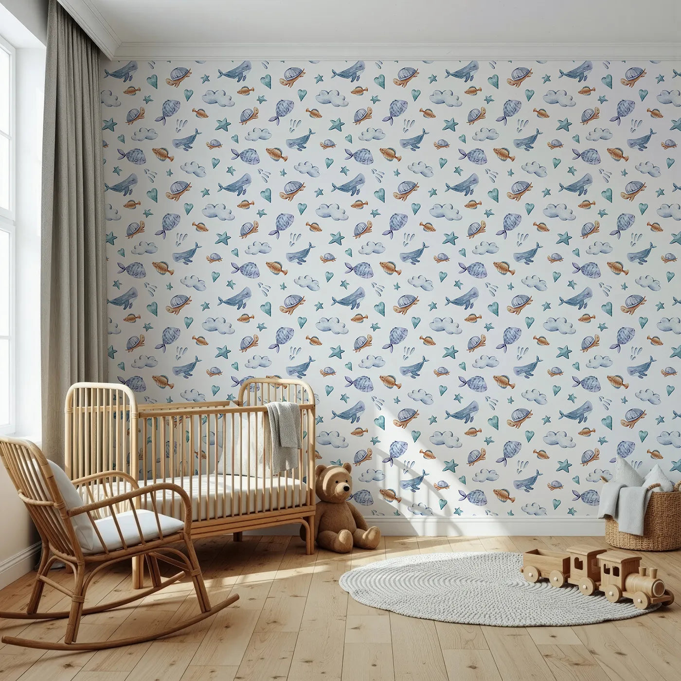 Front view of Whimsy Tots' Pastel Ocean Friends Wallpaper
