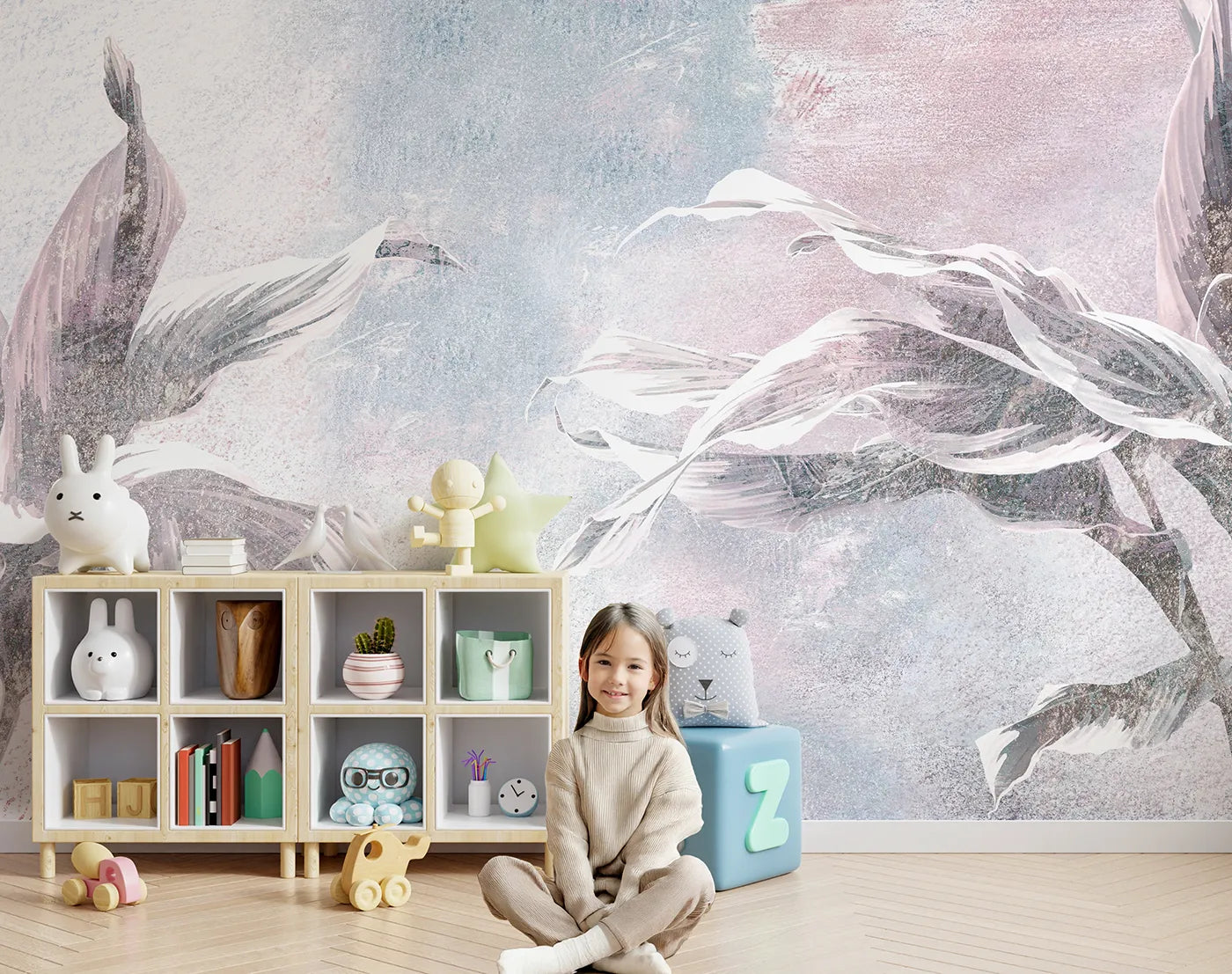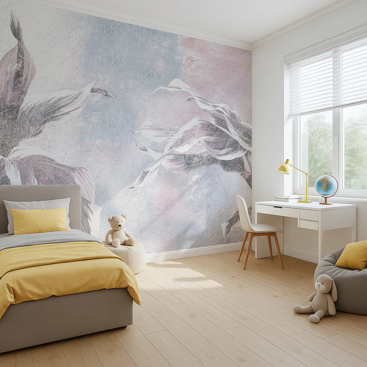 This unique wallpaper makes a chic accent wall that feels both glamorous and gentle. Our made-to-order, peel and stick murals are renter-friendly and easy for busy parents to install for a high-end look. All our murals are printed with GREENGUARD Gold Certified inks.