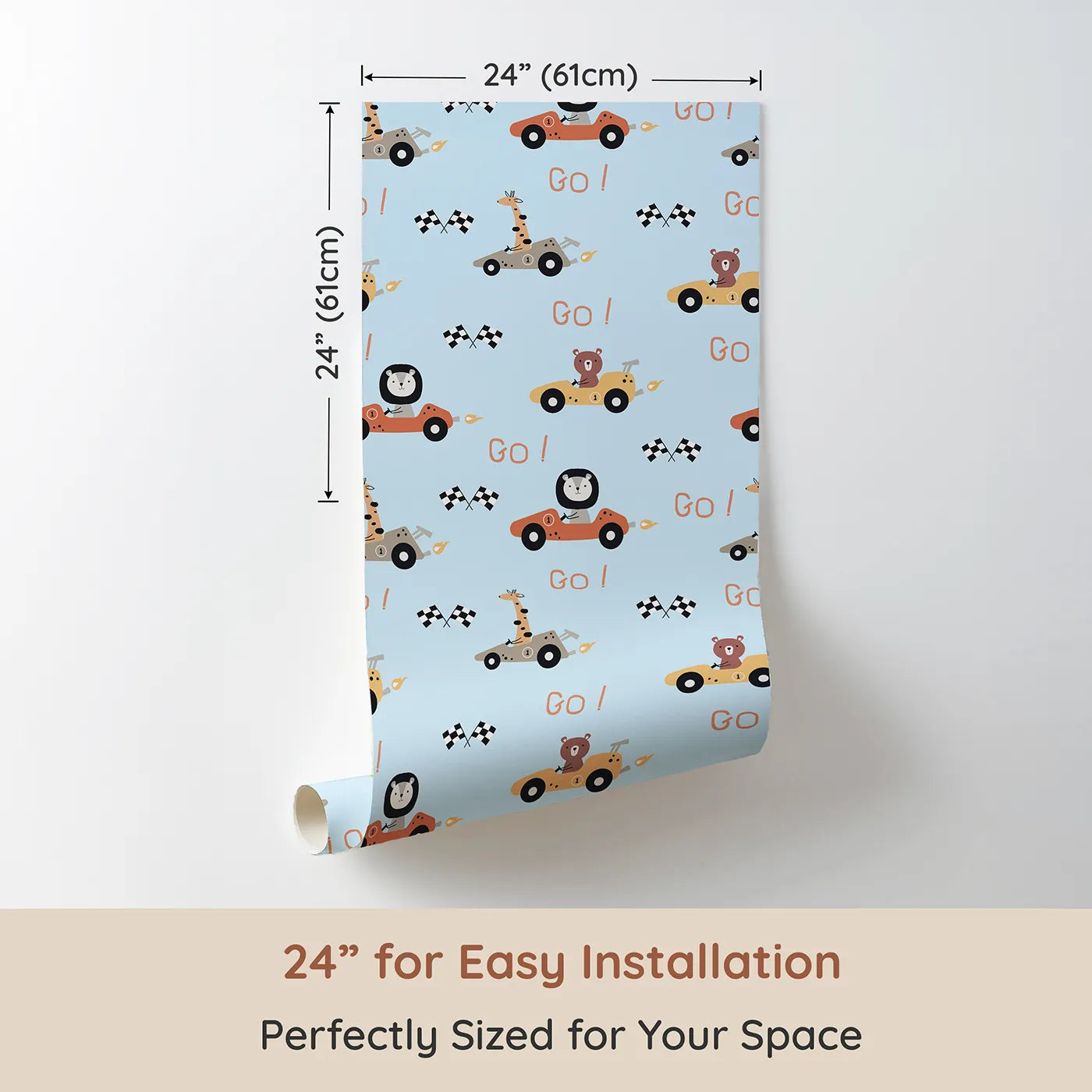 | Design | Animal Racers Wallpaper in Sky Blue |