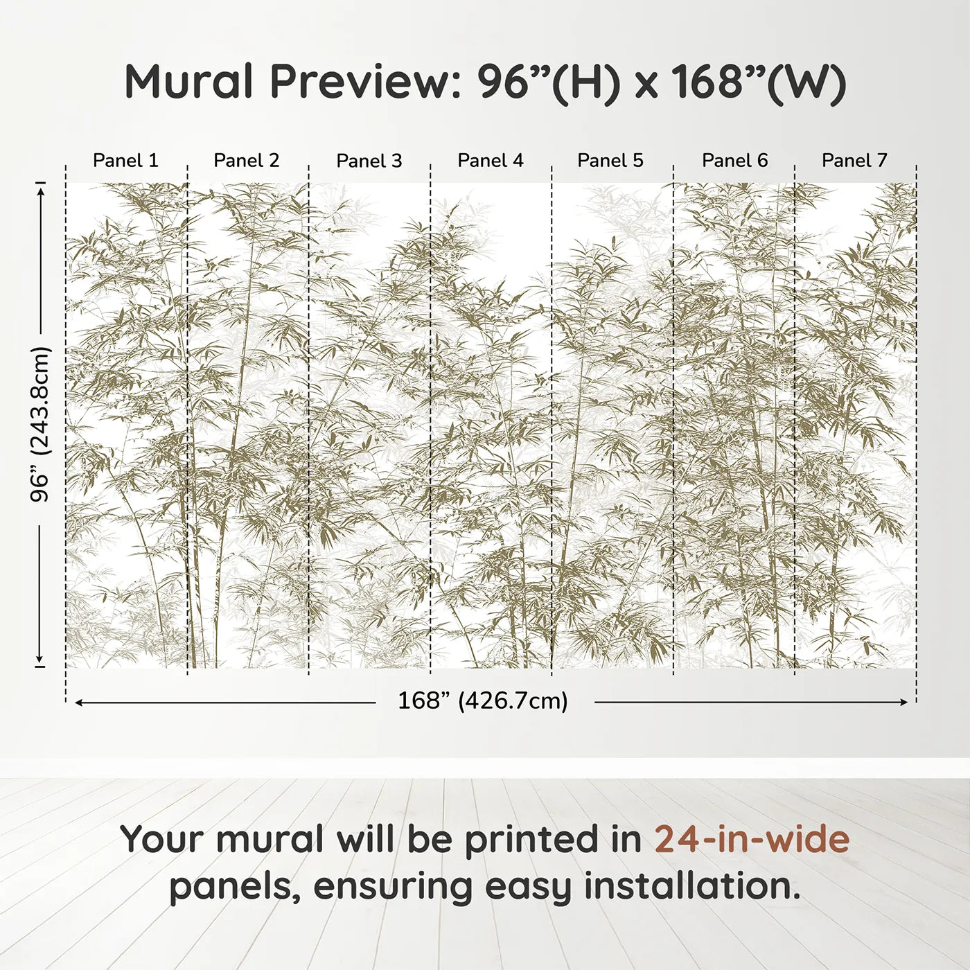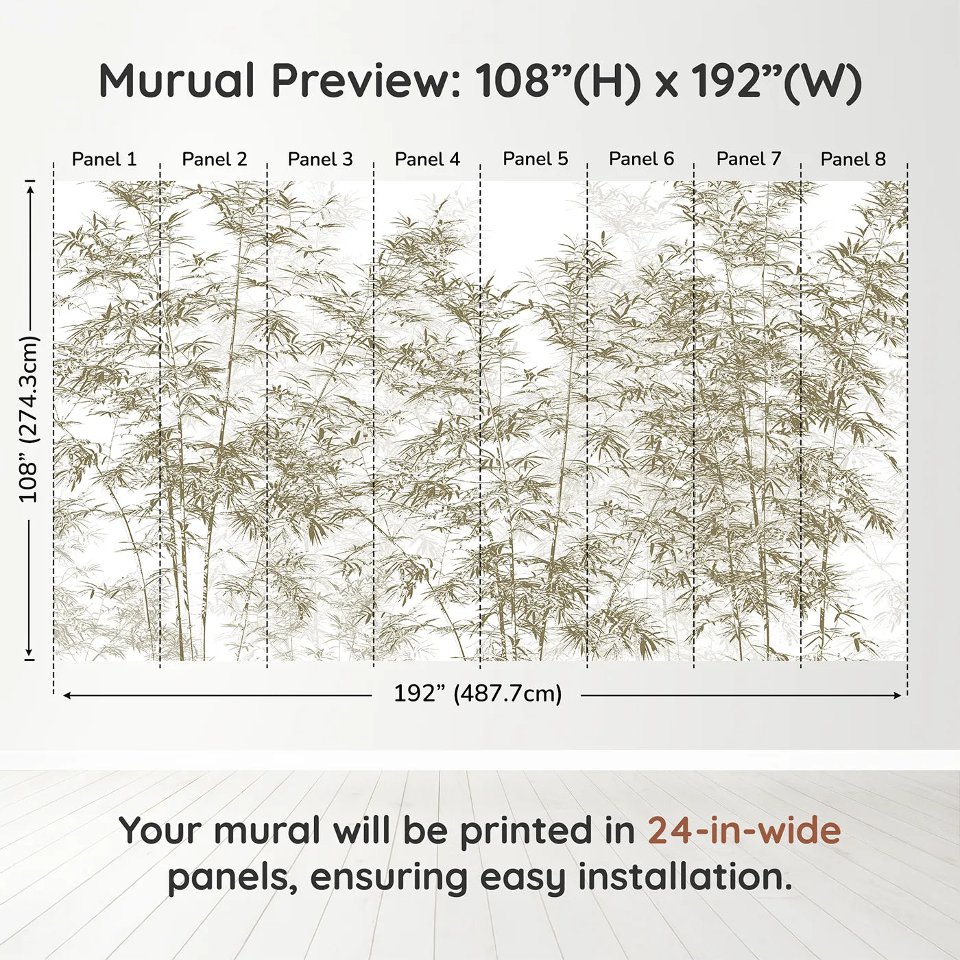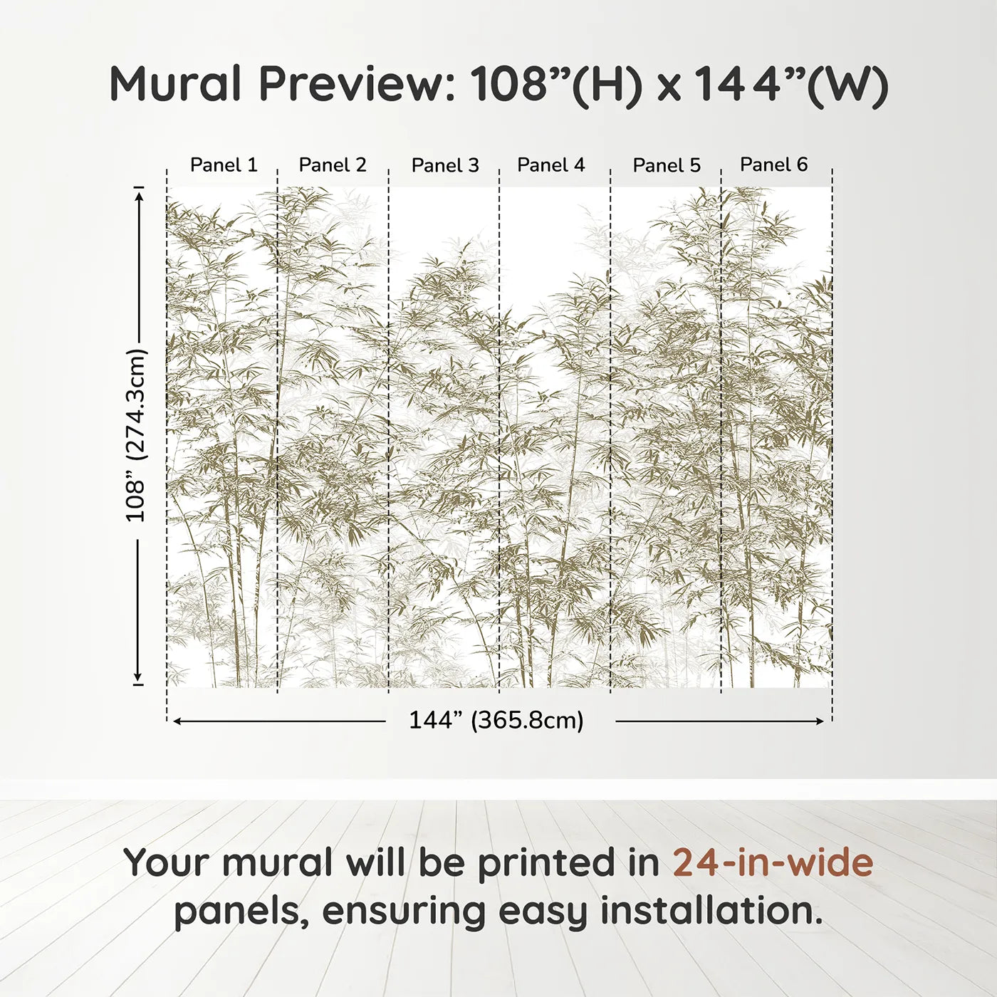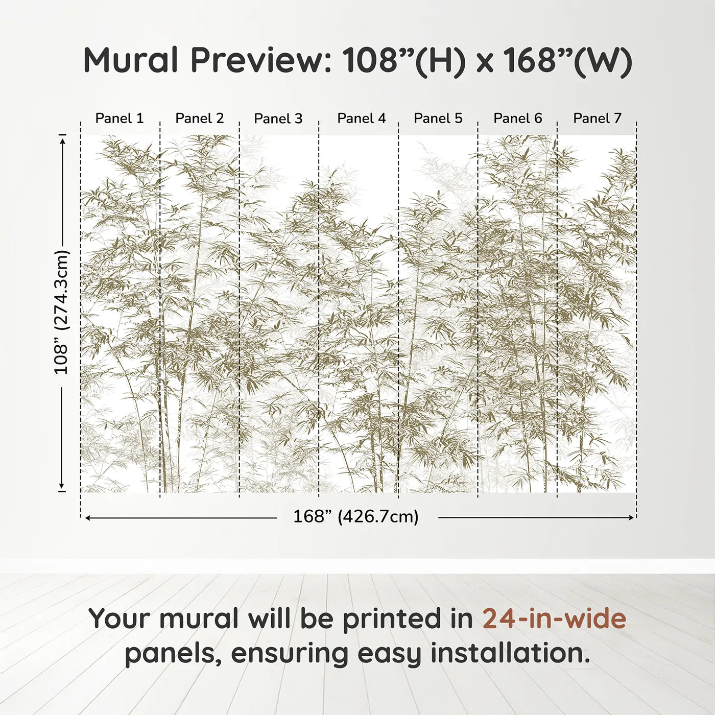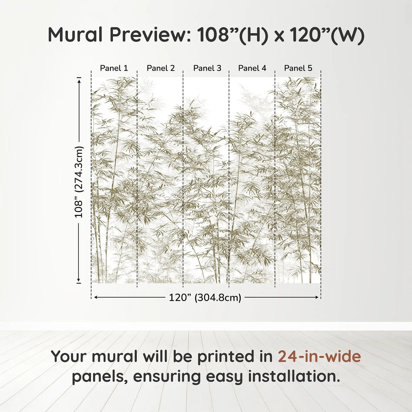 This beautiful and sophisticated botanical wall mural features a dense grove of bamboo stalks in a classic, engraved style. The warm brown color and intricate details create a timeless and calming atmosphere, perfect for a chic, gender-neutral nursery with a touch of natural, earthy style.