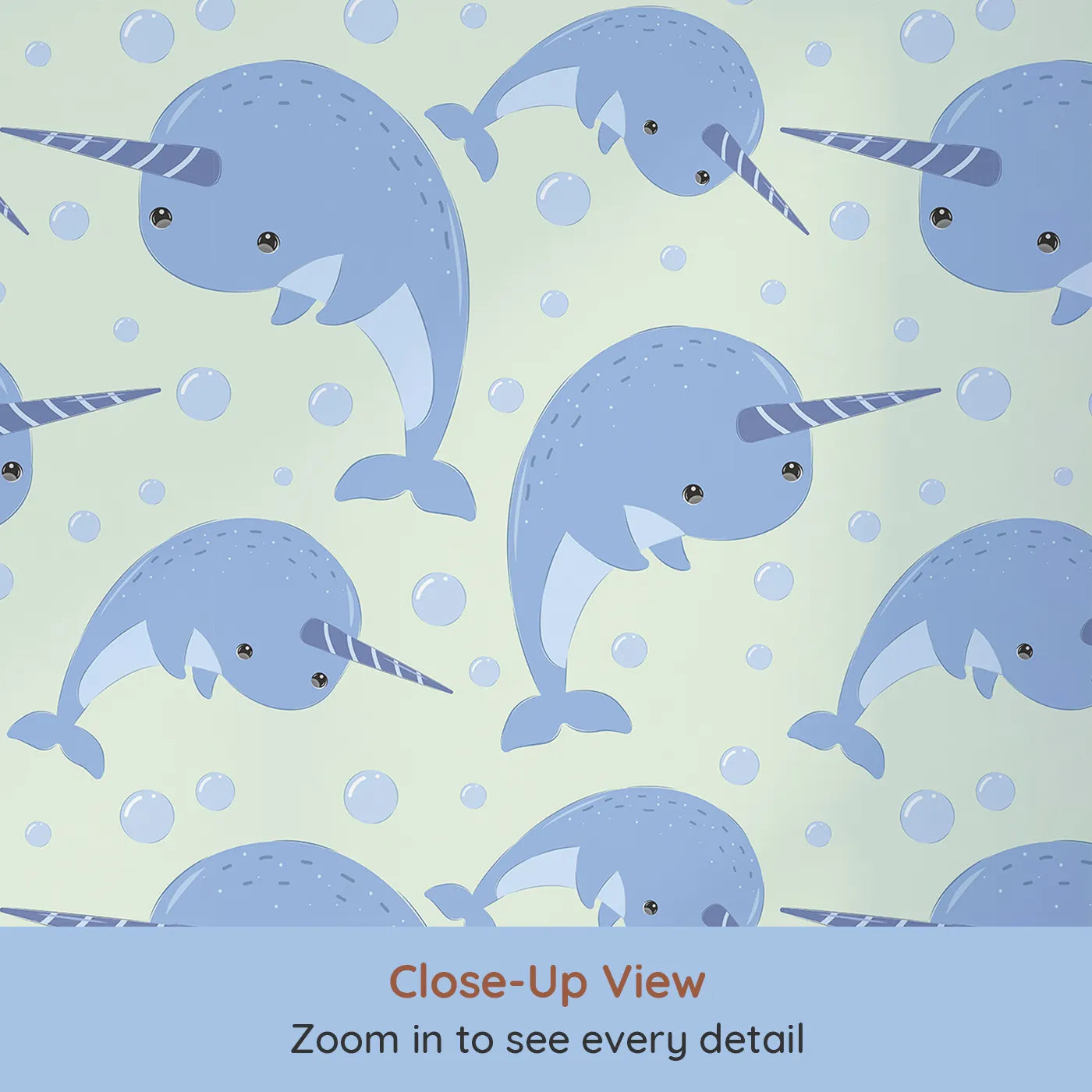 | Design | Bubbly Narwhal Parade Wallpaper in Mint Green |