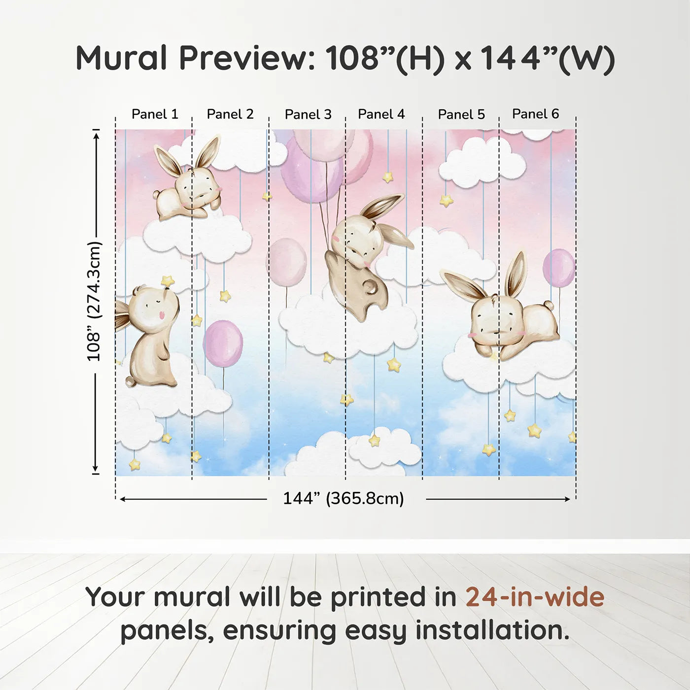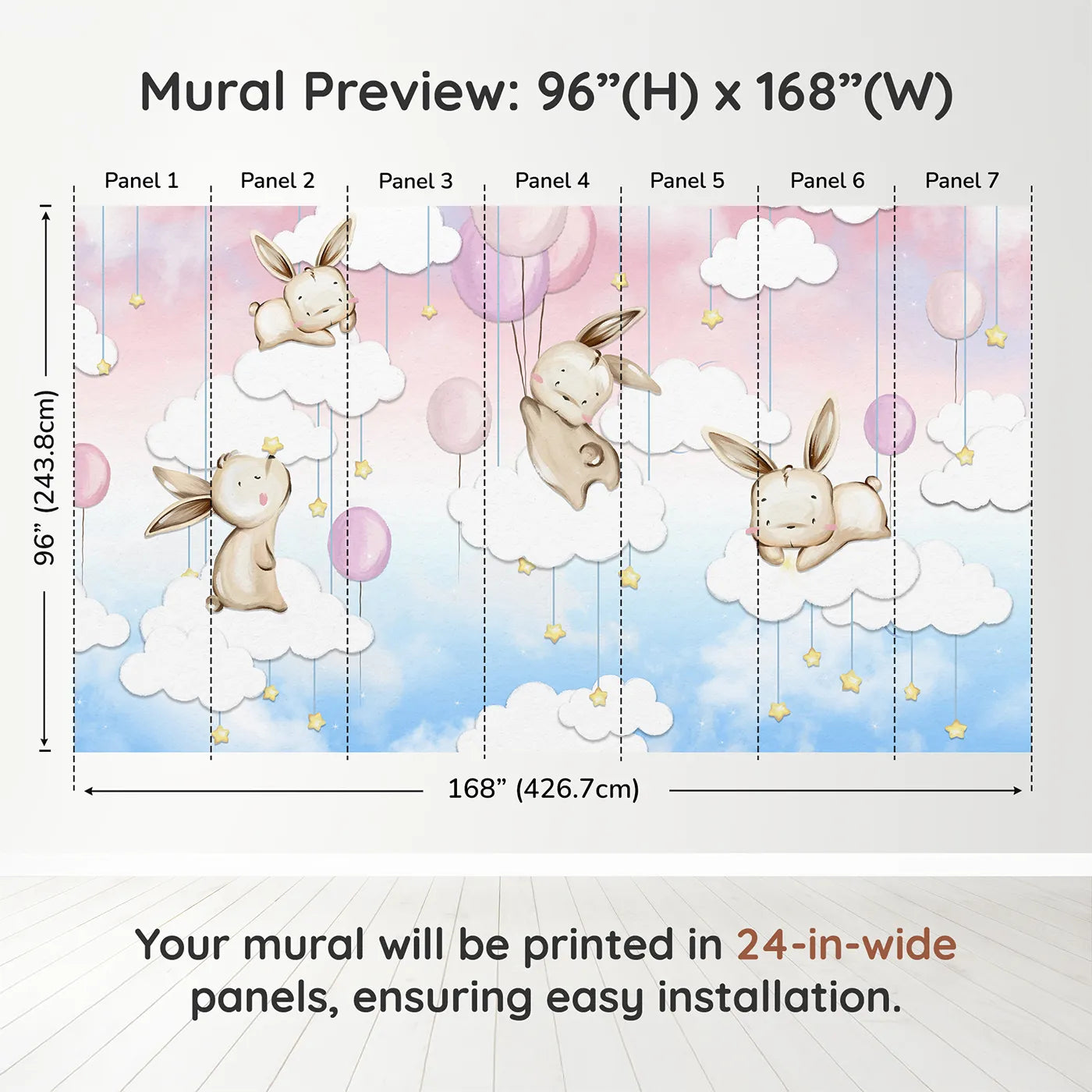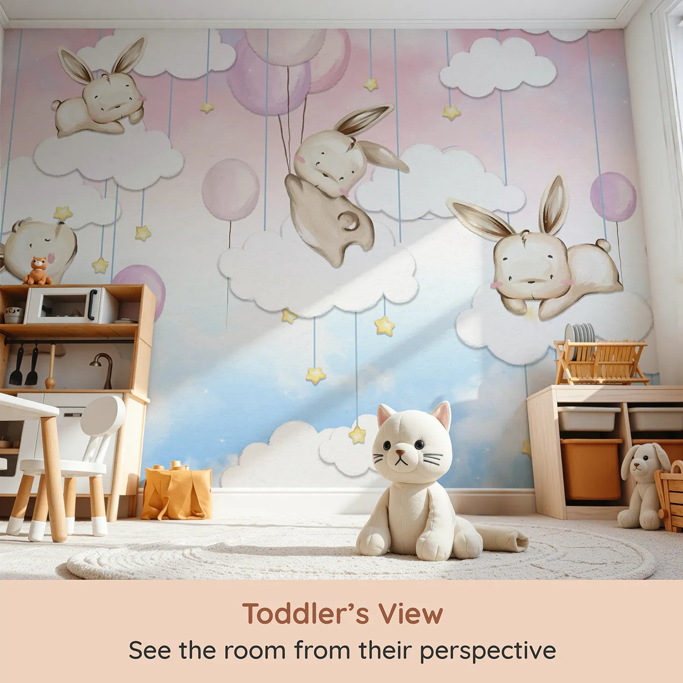 Bunny Cloud Dreams Wall Mural - A Dreamy Sky for Your Little Bunny
