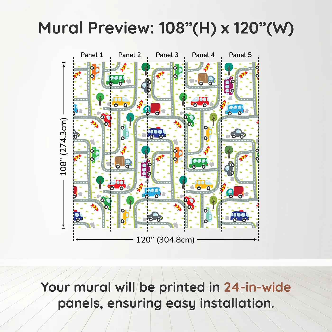 Busy Roads Wall Mural - A Bustling Town of Cars and Trucks
