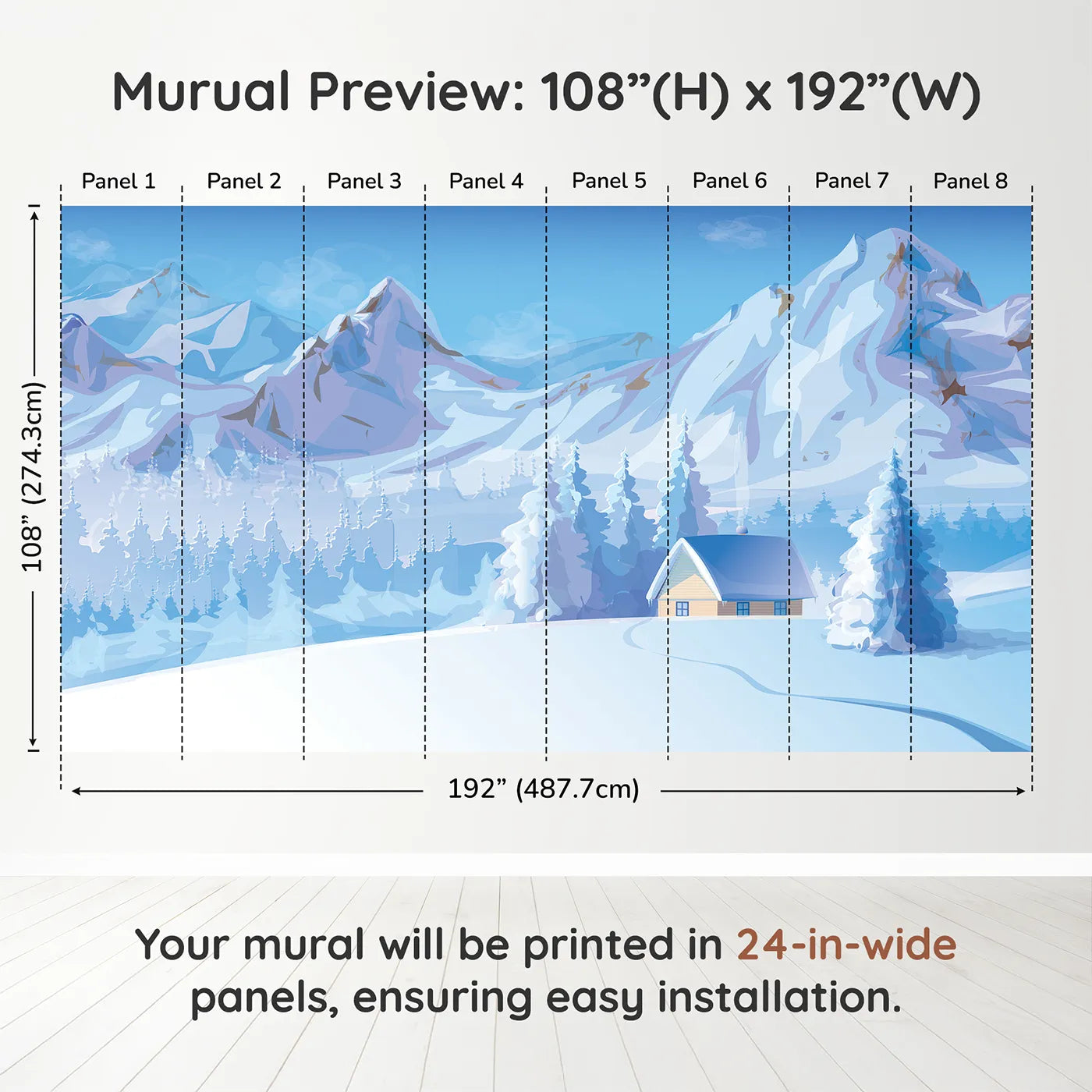 Cozy Winter Cabin Wall Mural - A Snowy Mountain Escape for Sweet Slumbers