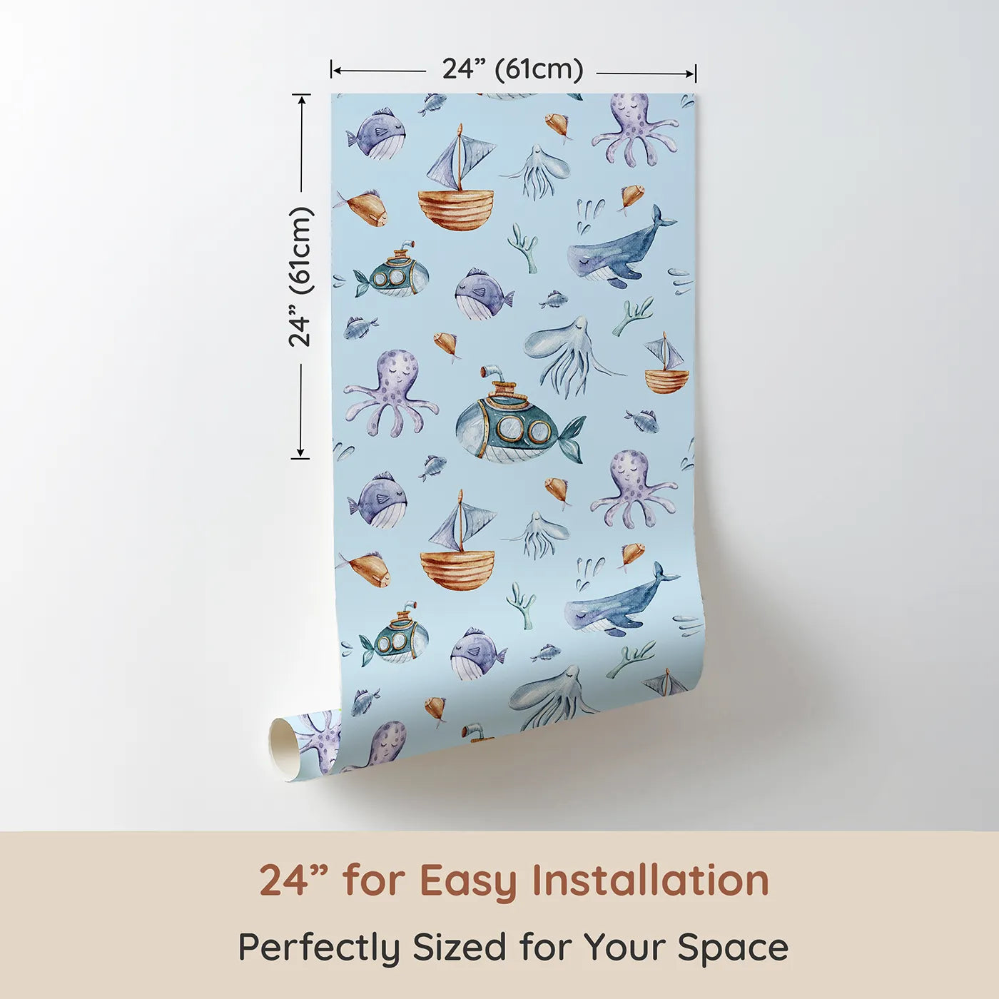 Perfect for a nursery or a child's bathroom, this design inspires curiosity and peaceful dreams of the deep blue sea. Our self-adhesive wallpaper is renter-friendly and simple for parents to install. All our wallpapers are printed with GREENGUARD Gold Certified inks.