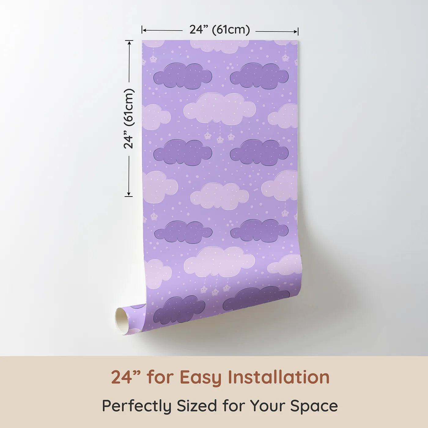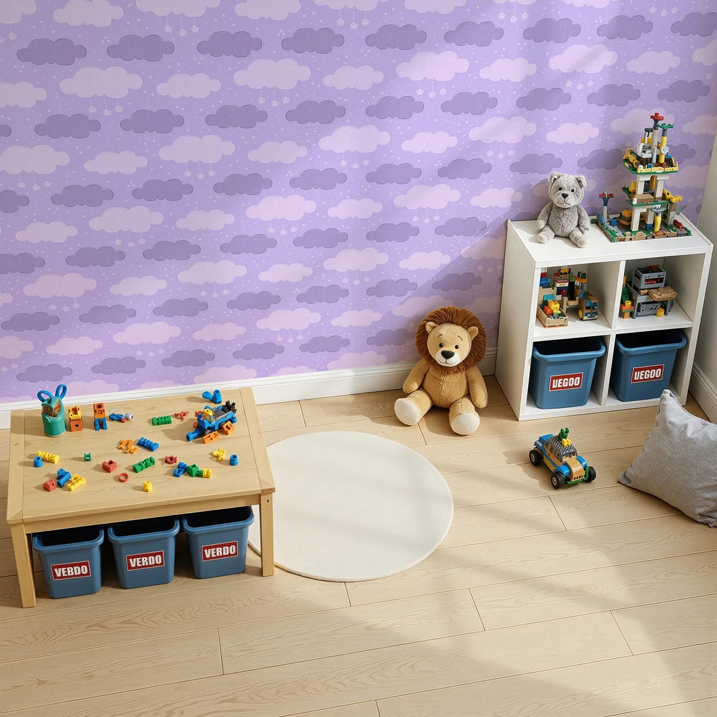 Dreamy Drizzle Clouds Wallpaper in Purple - A Whimsical Sky for Little Dreamers