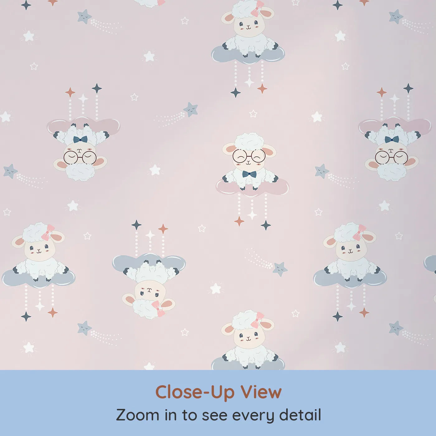 Dreamy Lamb Drops Wallpaper in Blush Pink - A Gentle Sky of Sleepy Lambs
