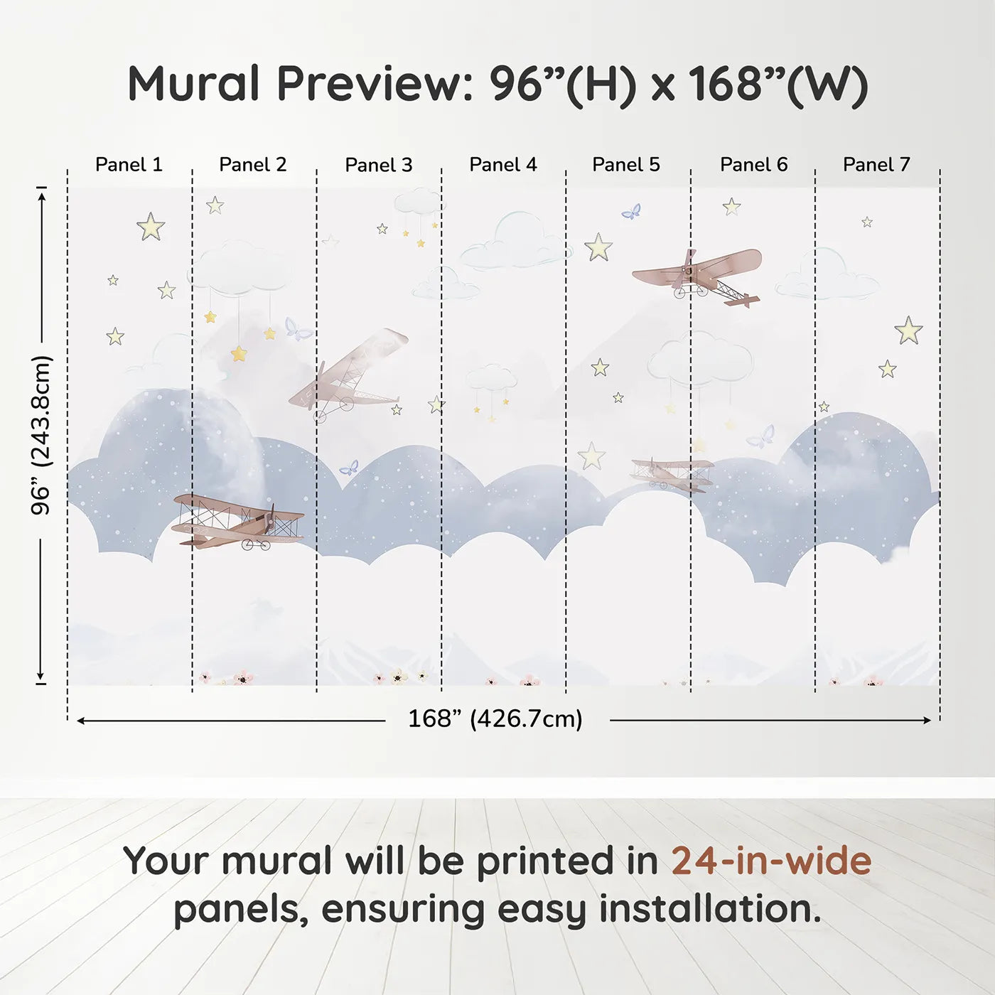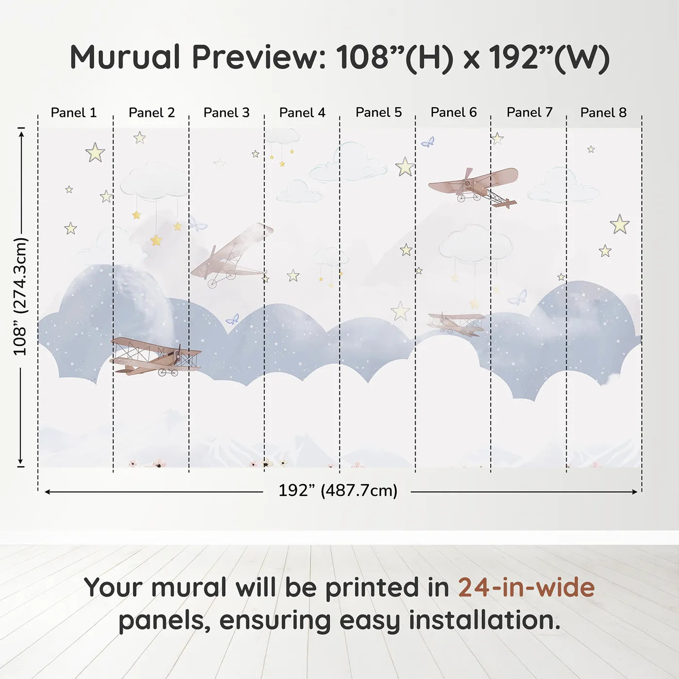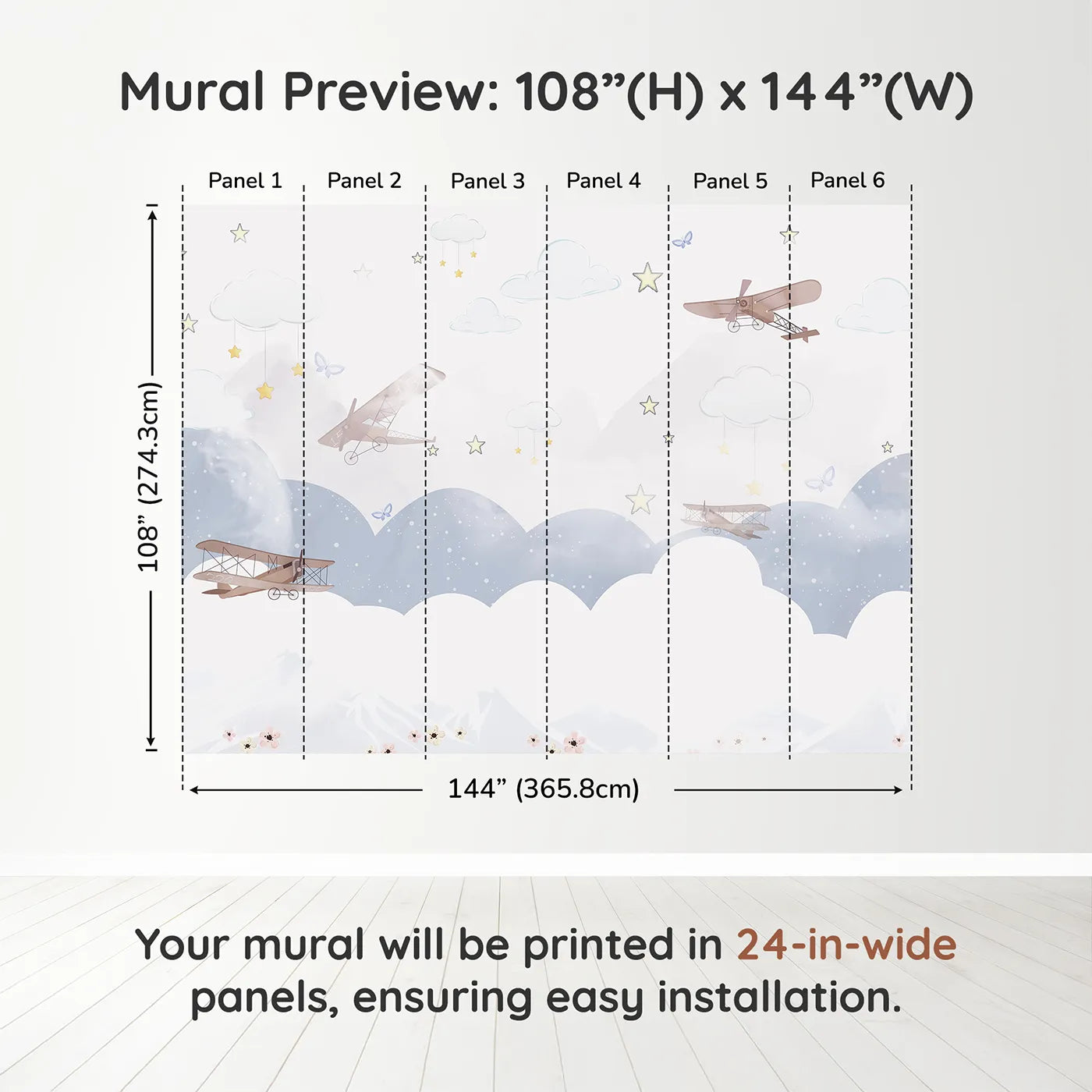 Dreamy Sky Adventure Wall Mural - A Sweet and Gentle Journey Through the Clouds