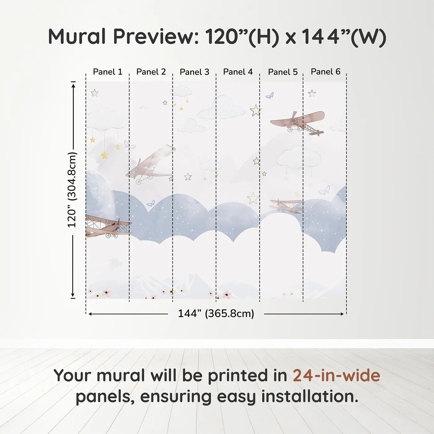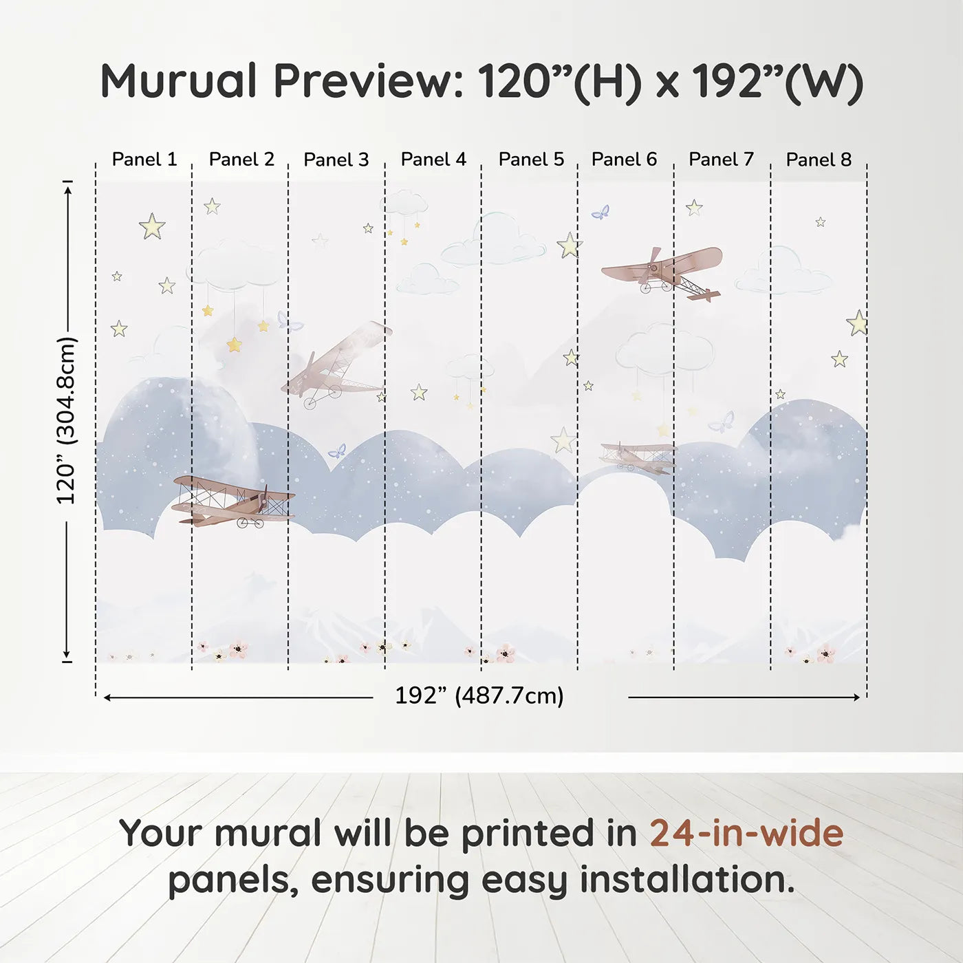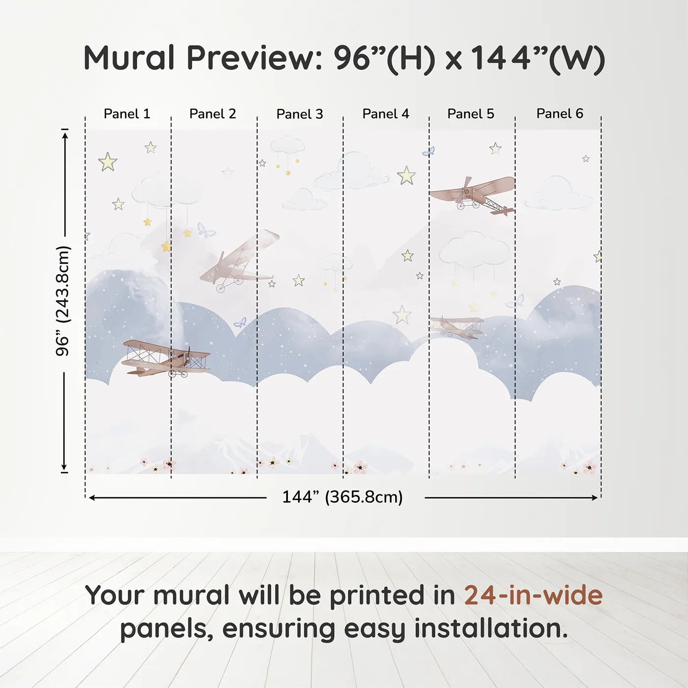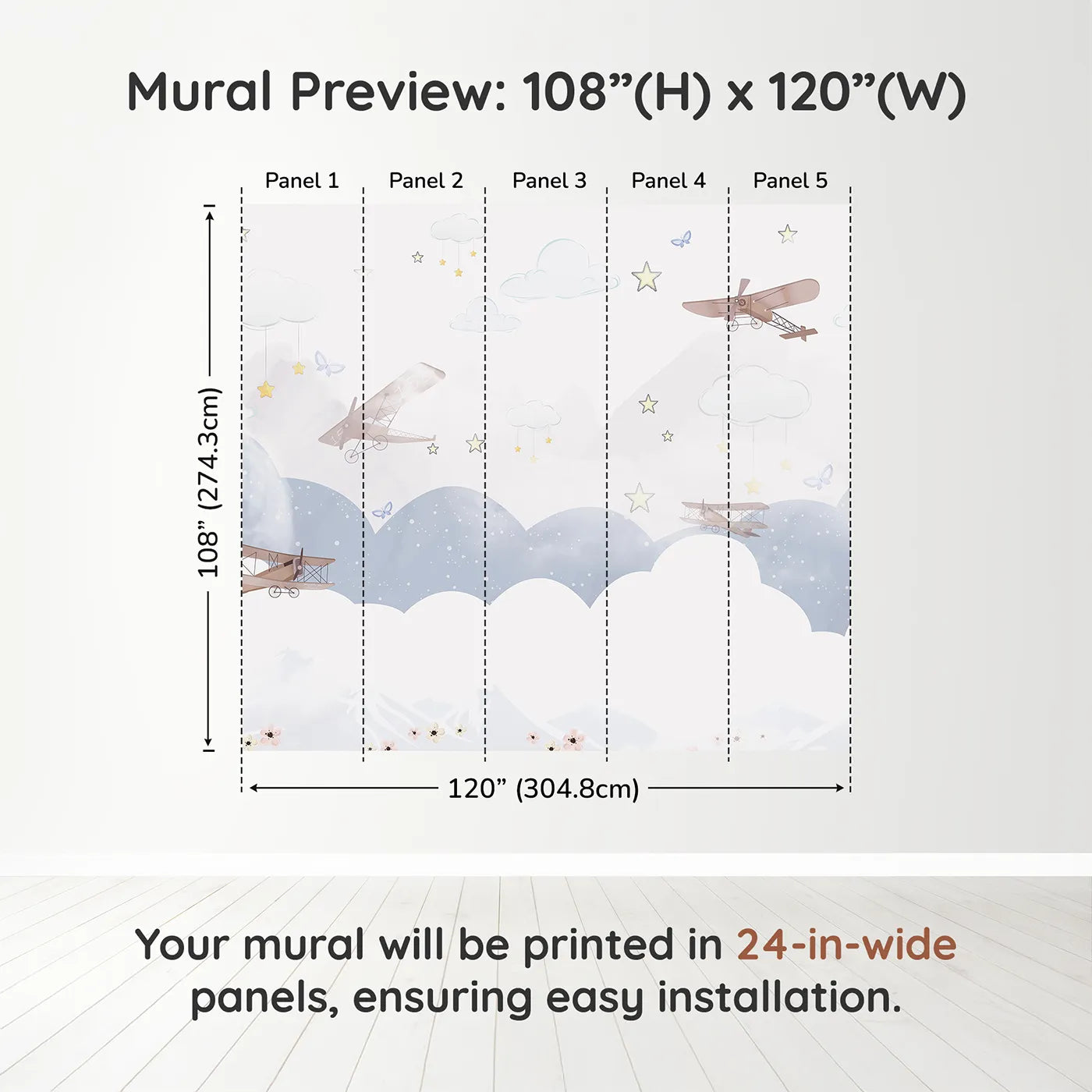 Dreamy Sky Adventure Wall Mural - A Sweet and Gentle Journey Through the Clouds