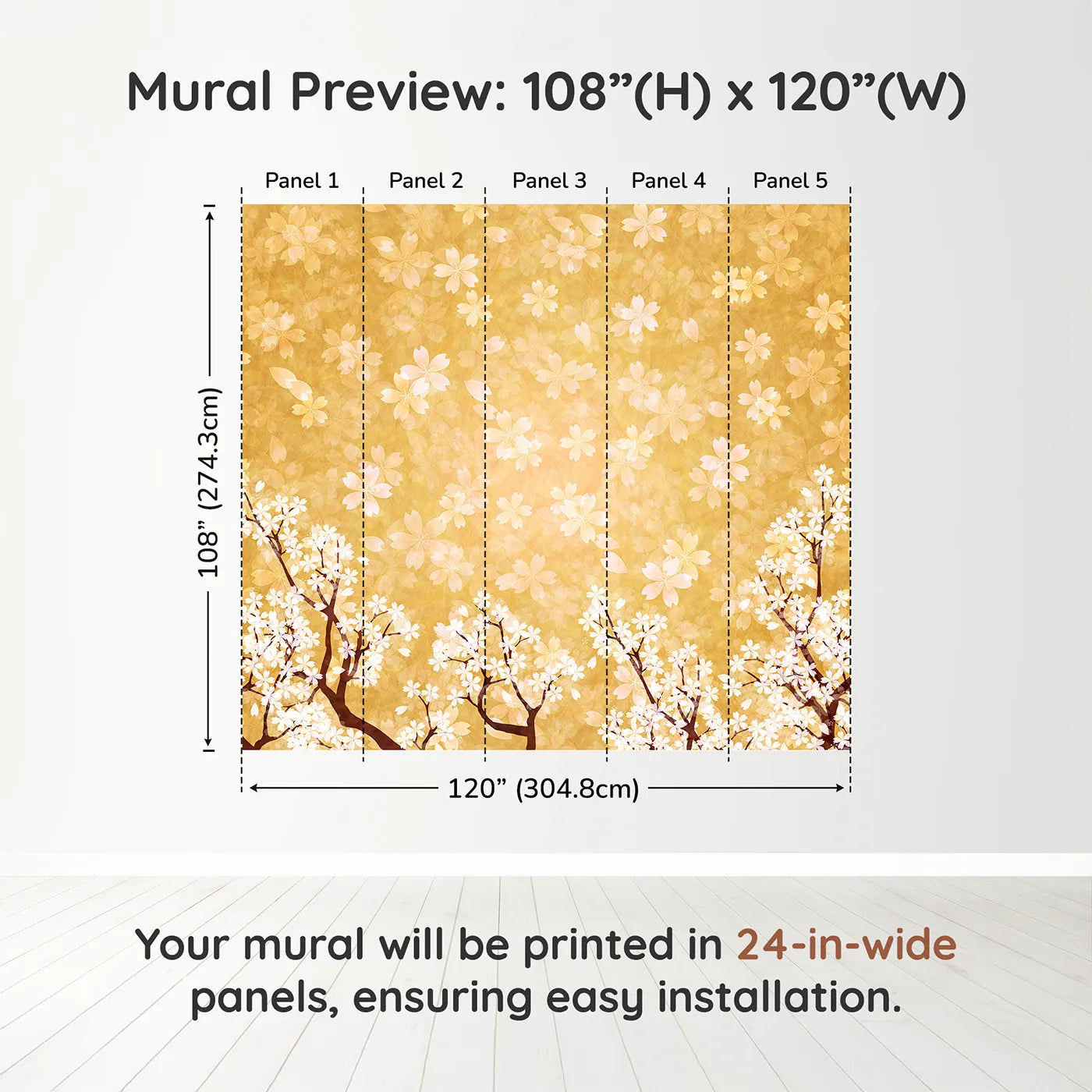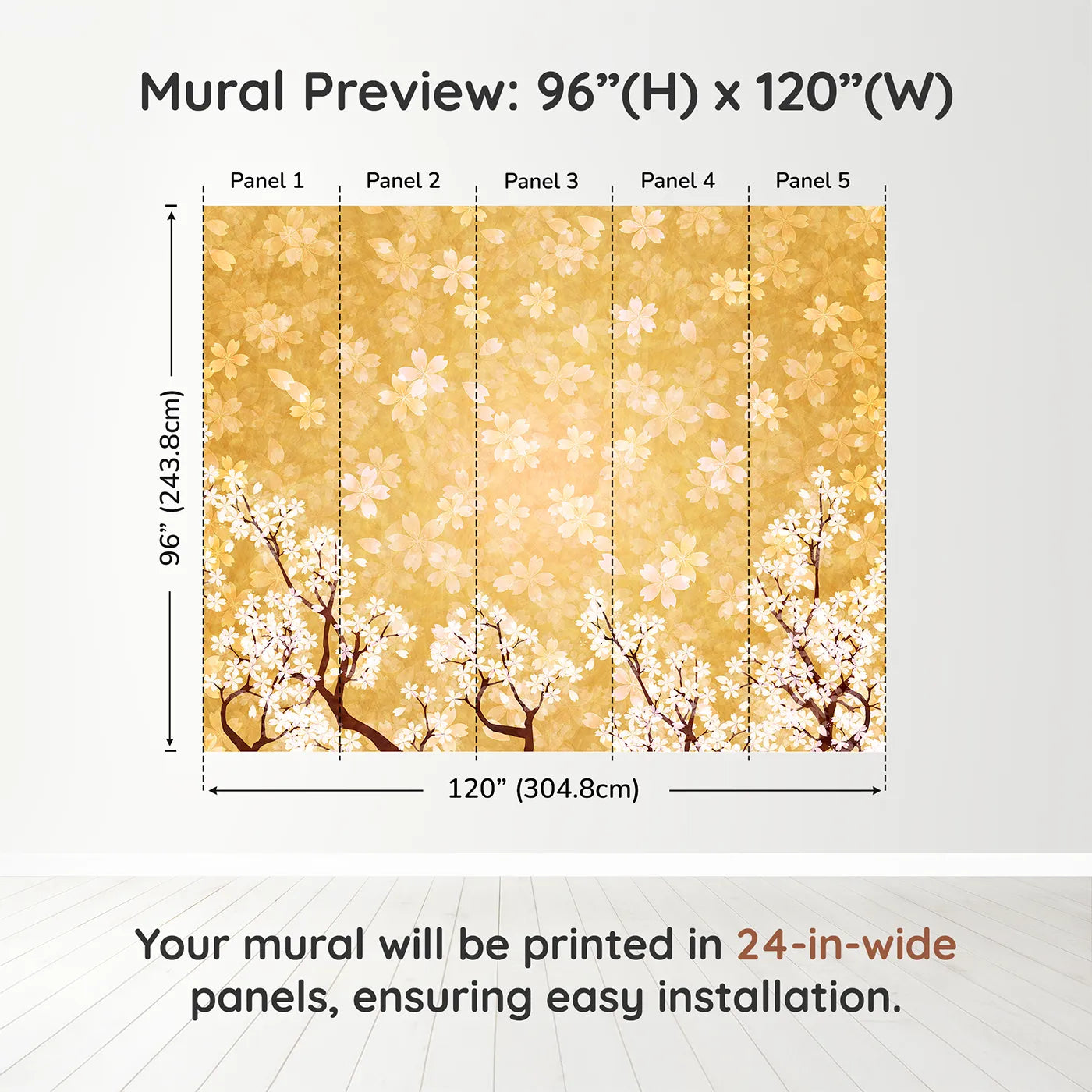 Golden Blossom Wall Mural - A Golden Sky of Falling Petals