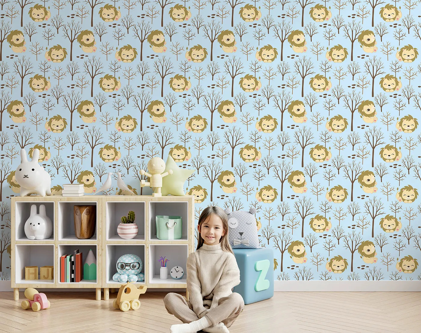 This charming boys wallpaper is filled with sweet, sleepy lions resting among simple trees, all set against a calm sky-blue background. The playful safari animal theme creates a joyful and imaginative space, while the gentle colors ensure the room feels serene and perfect for naptime.