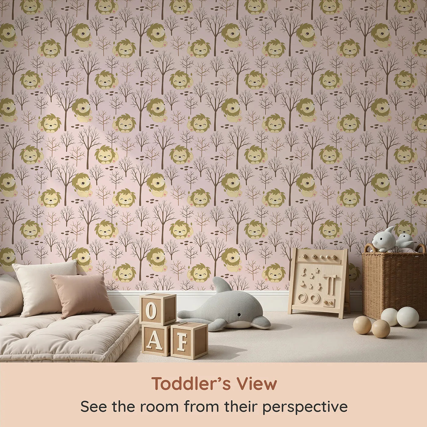 Little Lion Nap Wallpaper in Pink - A Sweet Safari for Cozy Naps