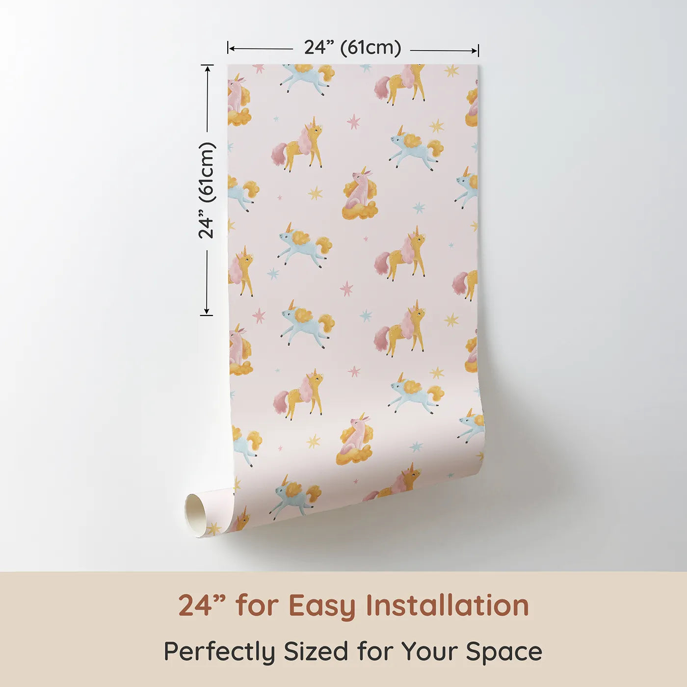 This unicorn wallpaper is sure to be a favorite for any little dreamer. Our self-adhesive wallpaper is made-to-order and so simple to install, making it a great, renter-friendly option for busy families. All our wallpapers are printed with GREENGUARD Gold Certified inks.