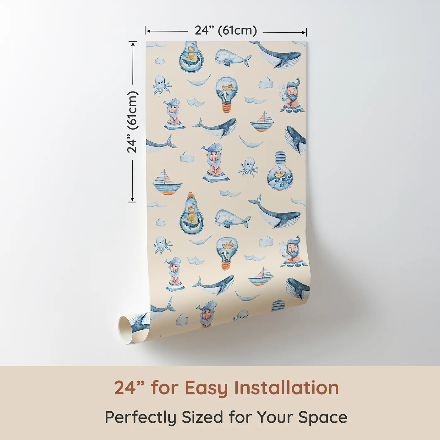 Maritime Whimsy Wallpaper in Cream - A Cozy Voyage on a Whimsical Sea