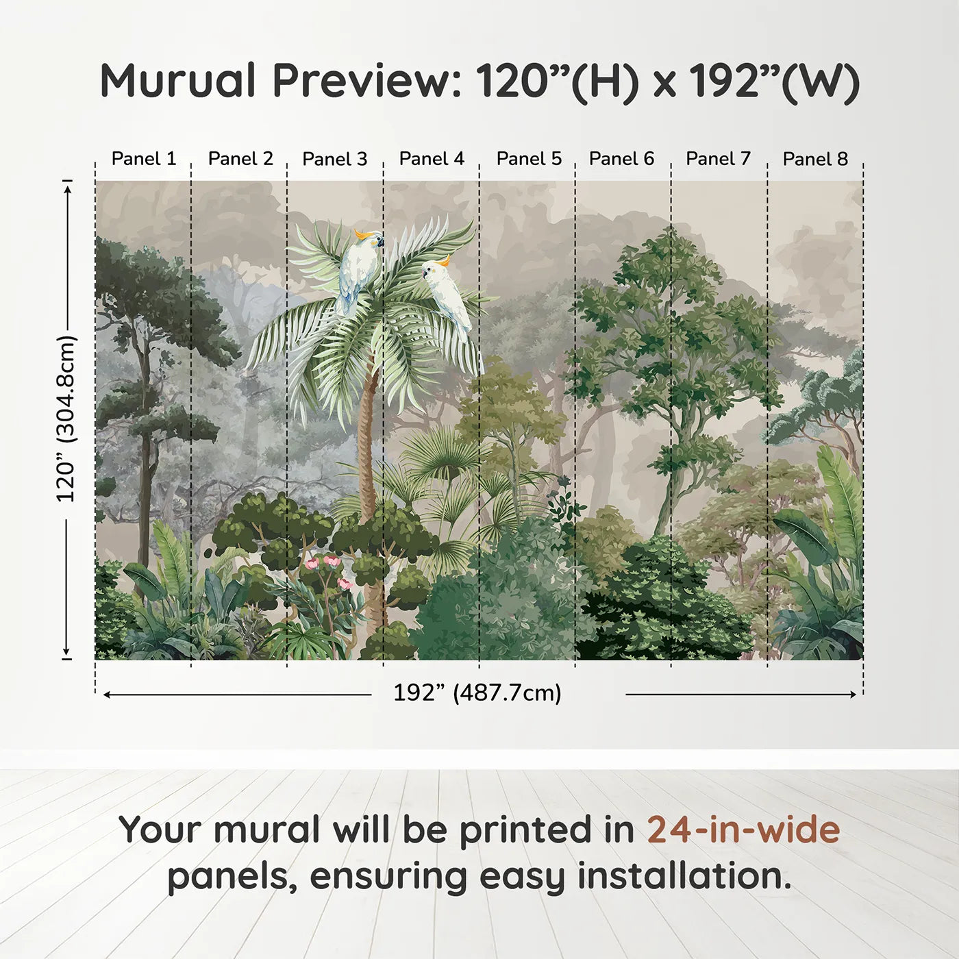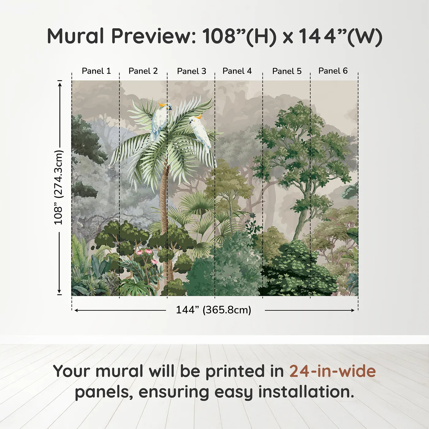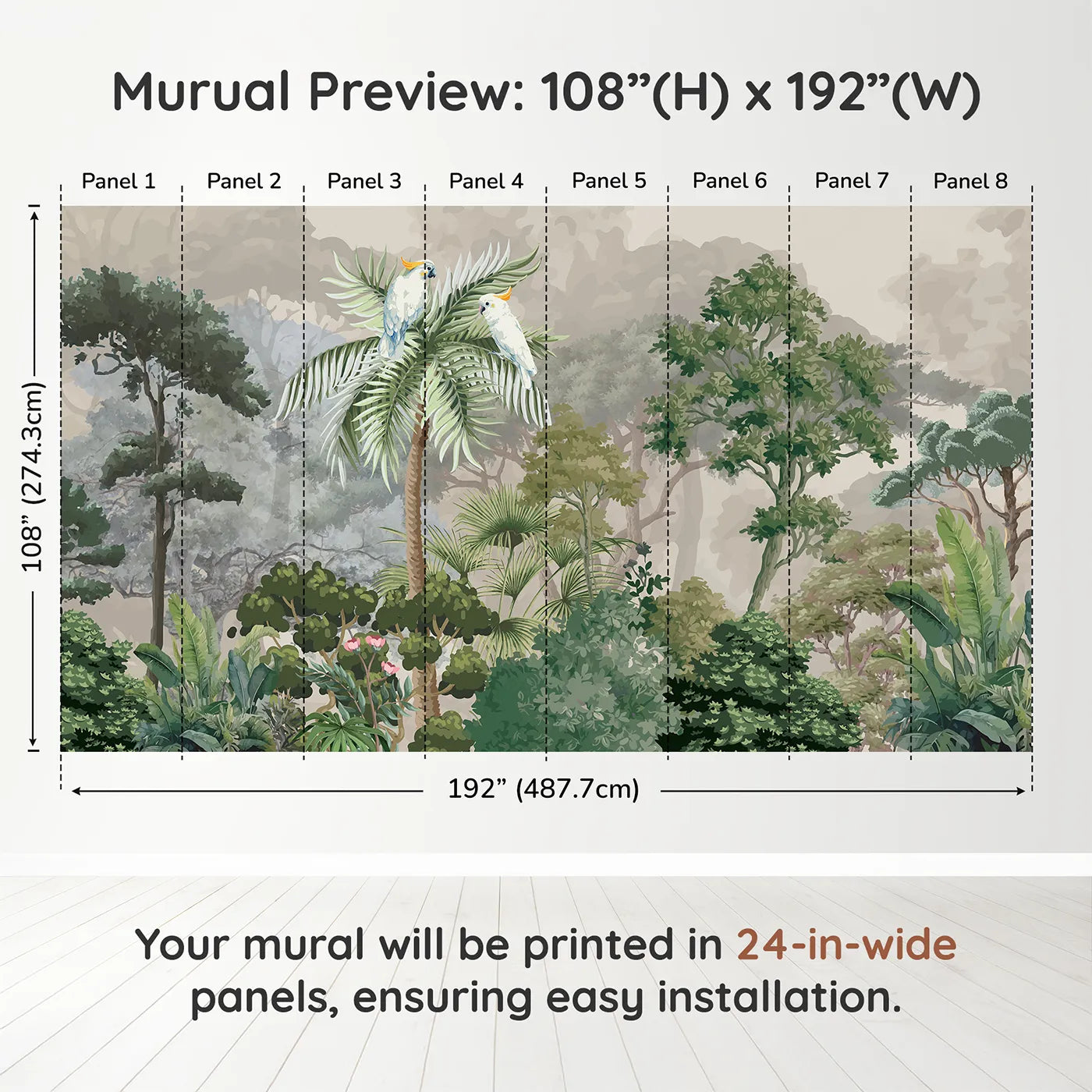 | Design | Misty Jungle Cockatoos Wall Mural |
