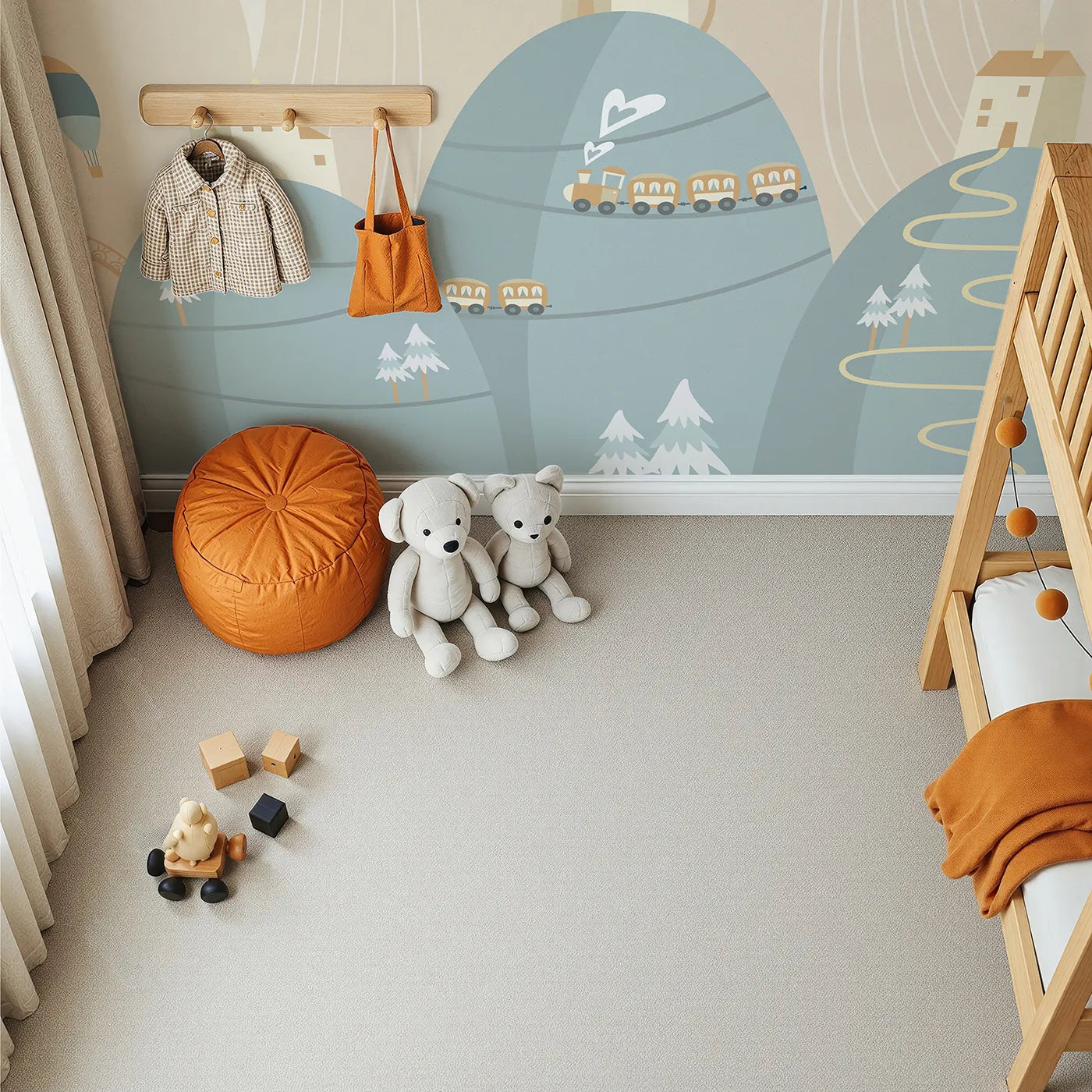 Mountain Train Adventure Wall Mural - A Scenic Journey for Little Explorers