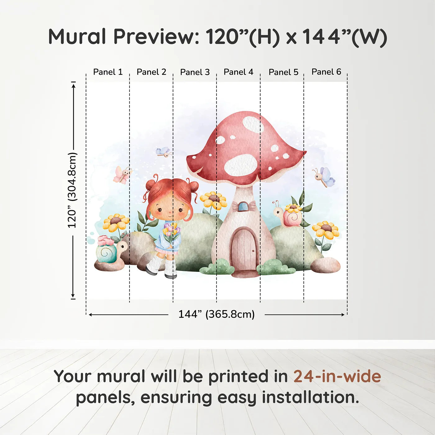 Mushroom House Fairy Wall Mural - A Sweet and Magical Visit to a Fairy's Garden