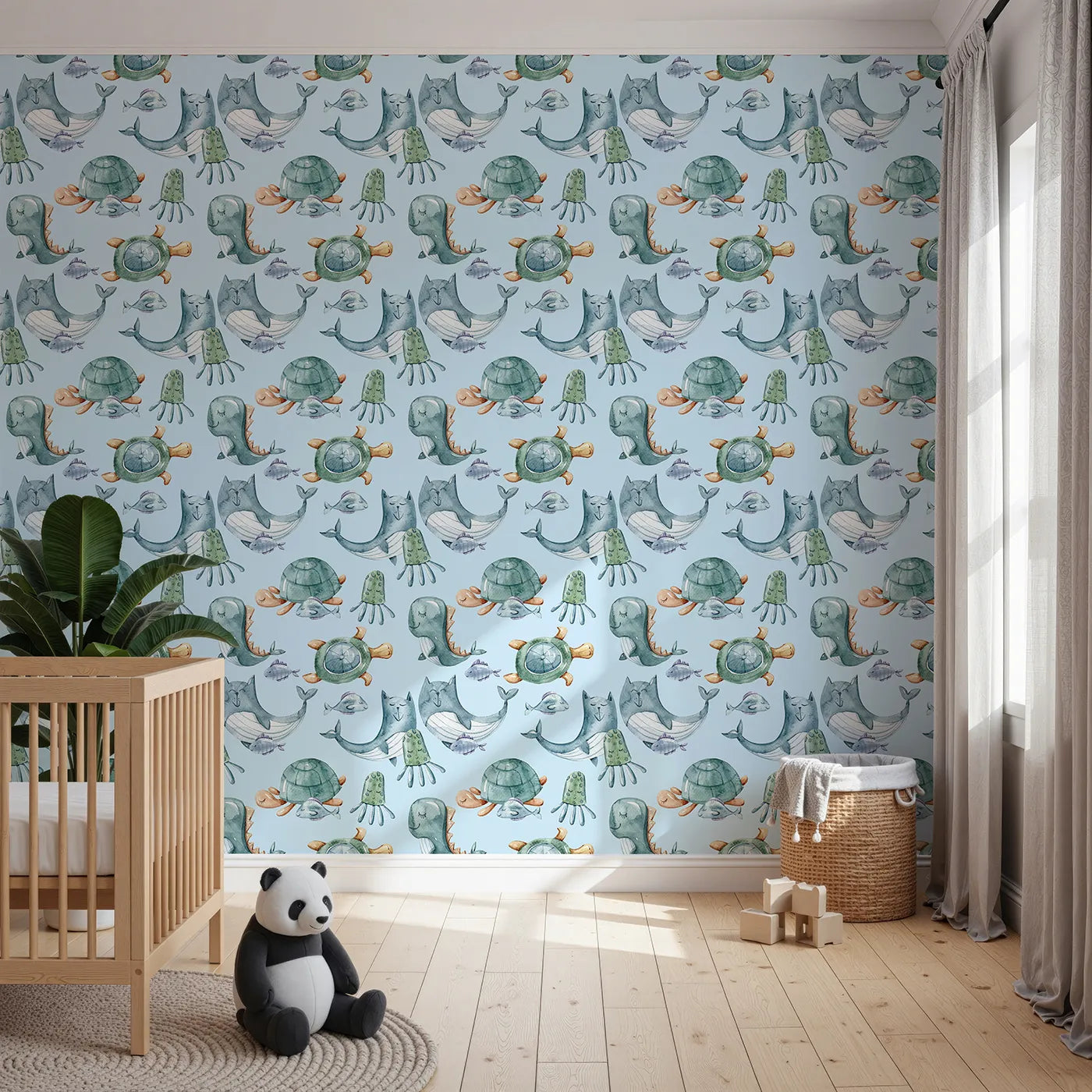 Ocean Daydream Creatures Wallpaper in Sky Blue - An Ocean Dream in a Big Blue Sky