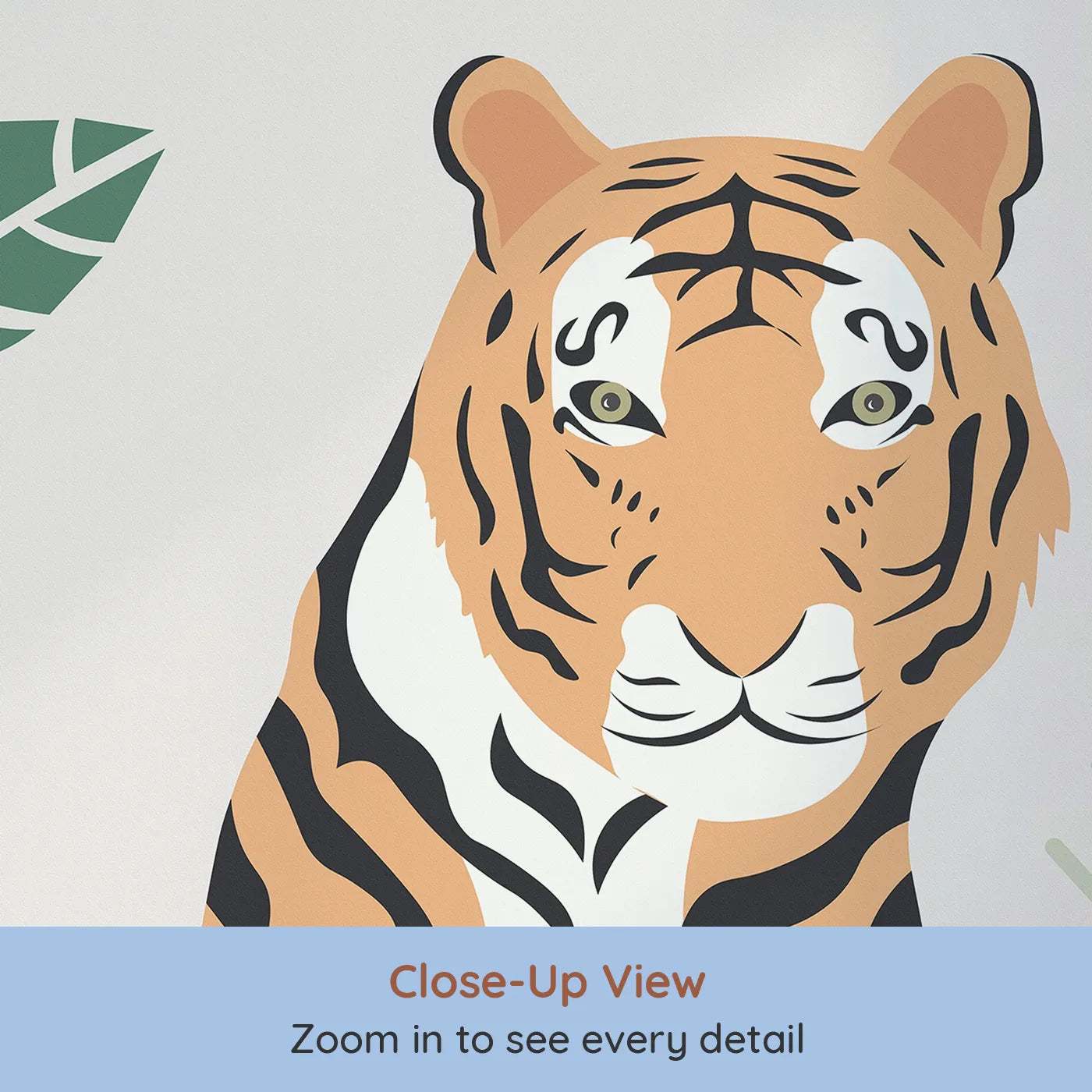 This modern and chic animal wallpaper features a collection of cute jungle animals, including a tiger, toucan, and monkey, set against a backdrop of pastel tropical leaves. The stylish, minimalist design and soft color palette make it a perfect choice for a sophisticated, gender-neutral nursery or playroom.