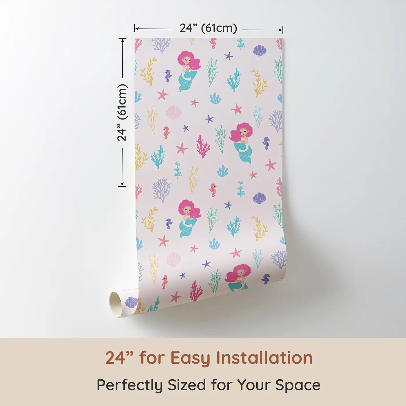 Let her imagination swim with mermaids and explore a colorful coral reef. Our made-to-order peel and stick wallpaper is a renter-friendly choice thatβs easy to install, helping busy parents create a truly magical space for their little dreamer. All our wallpapers are printed with GREENGUARD Gold Certified inks.