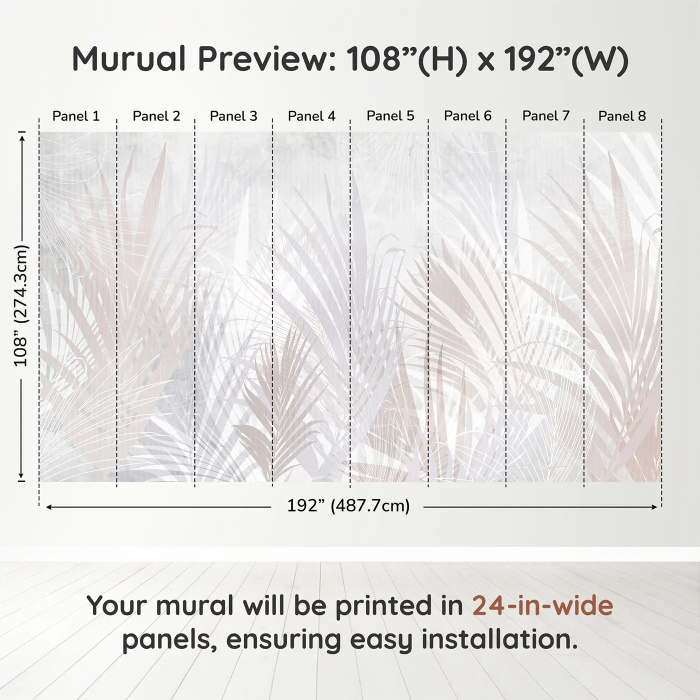 Pastel Palm Leaves Wall Mural - A Soft and Airy Tropical Dream