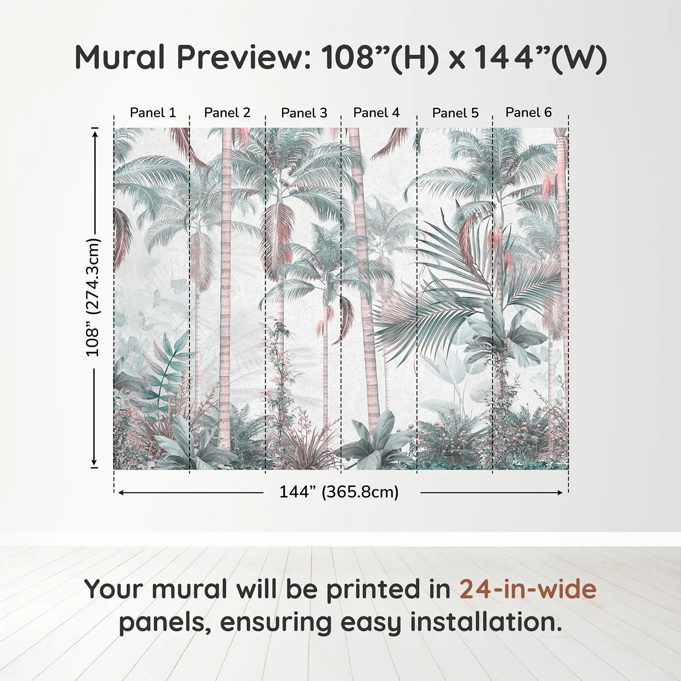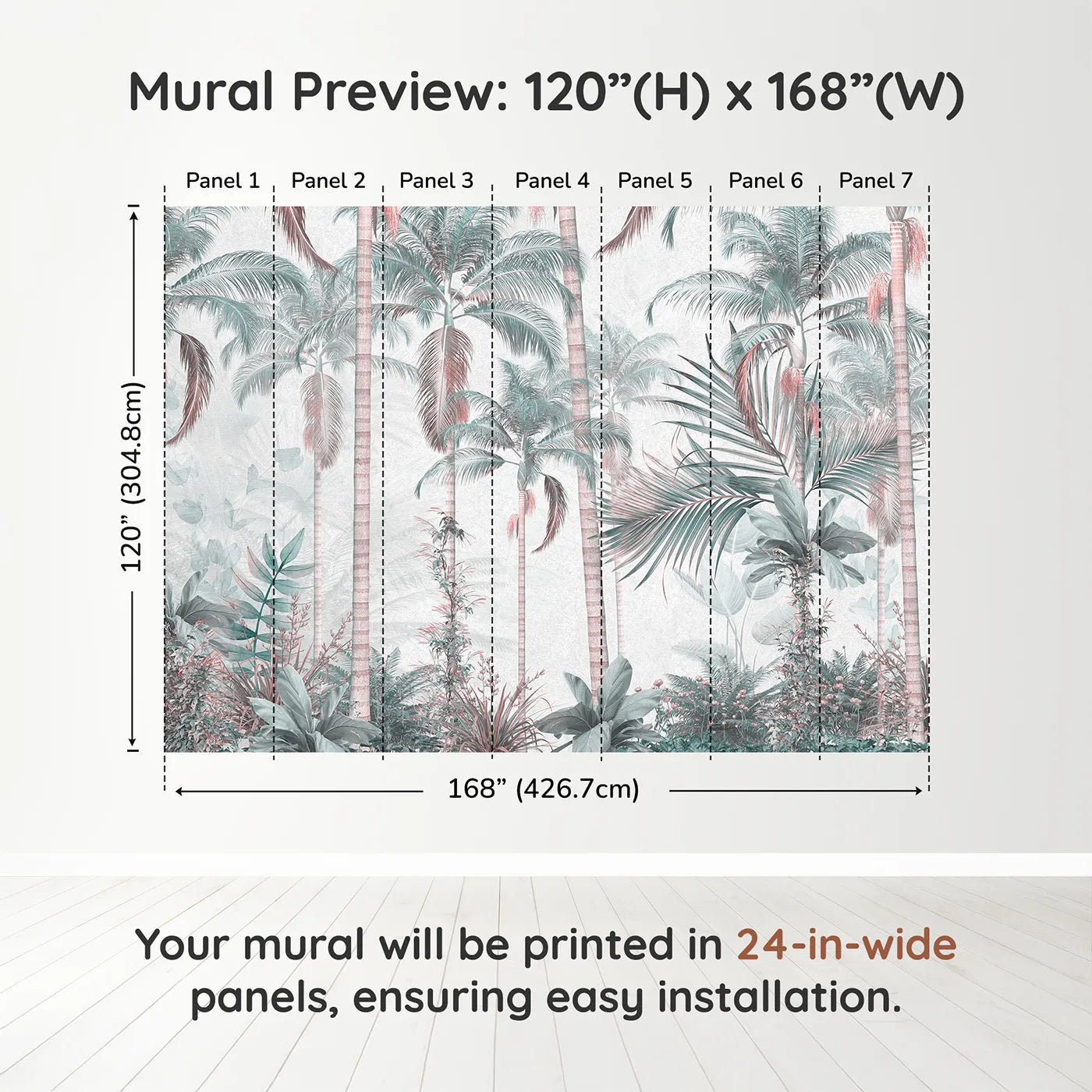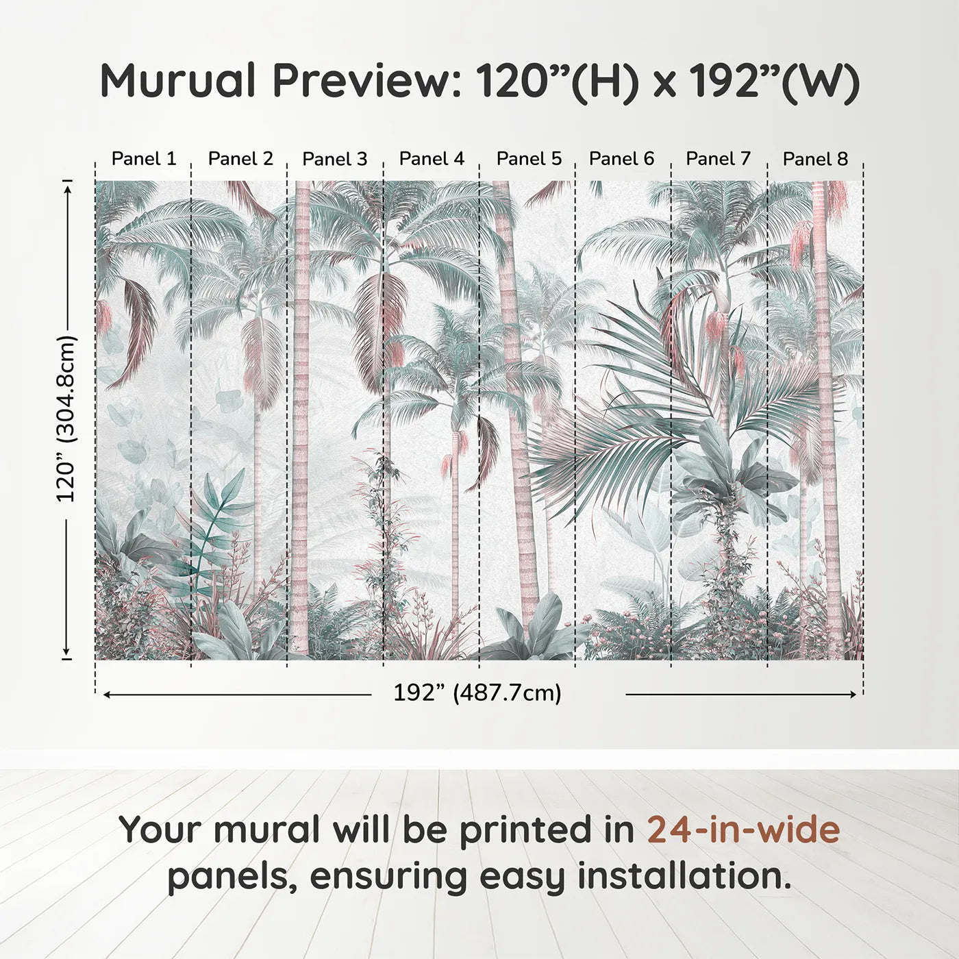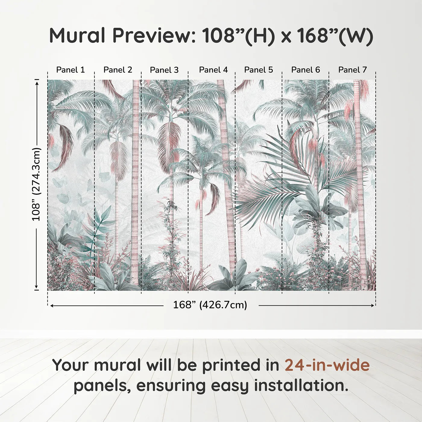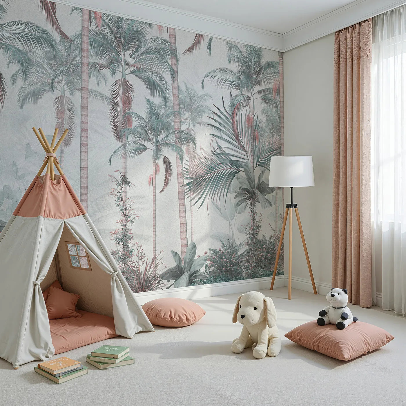 Pastel Palm Paradise Wall Mural - A Chic and Serene Tropical Getaway