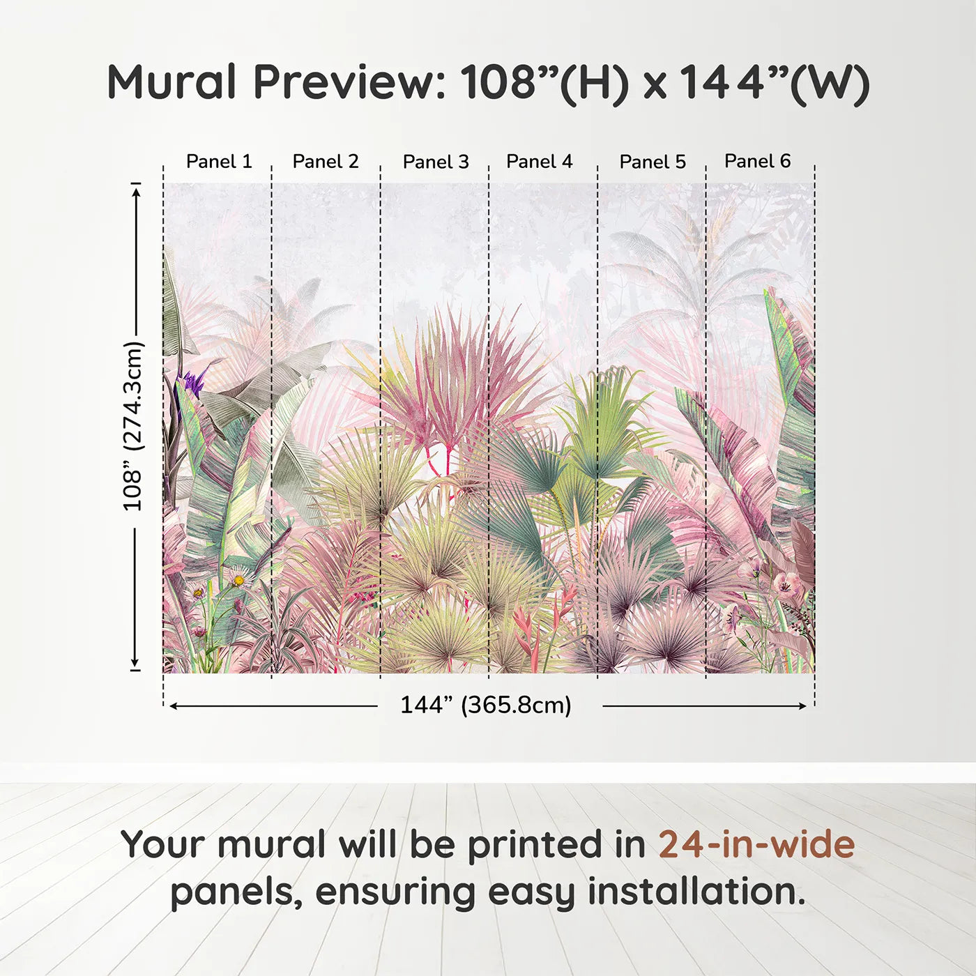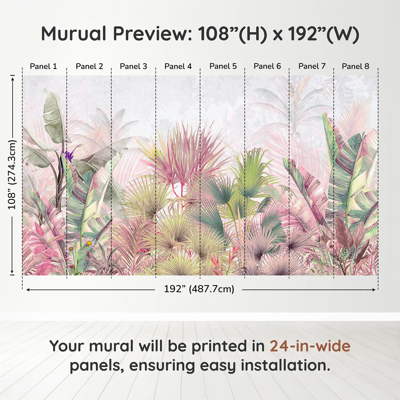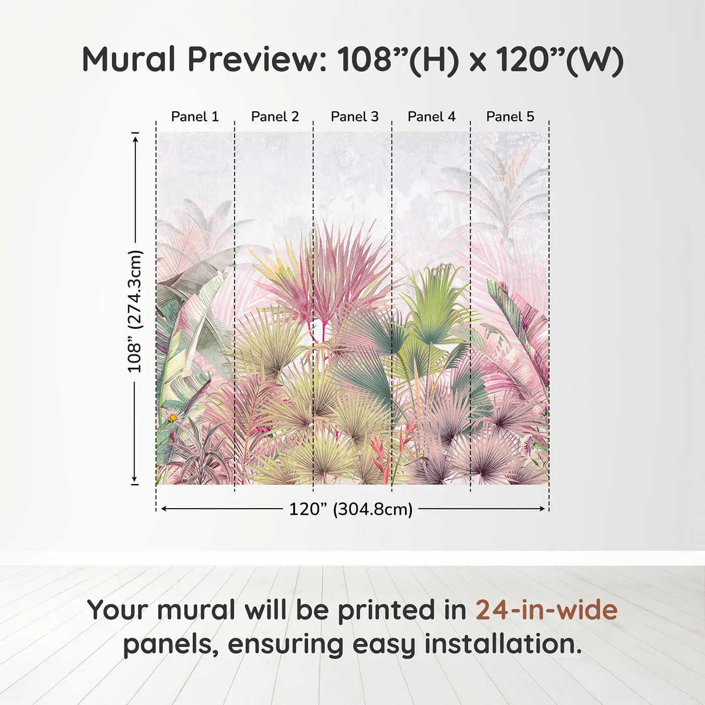 Pastel Tropical Jungle Wall Mural - A Gentle Jungle for Sweet Dreams