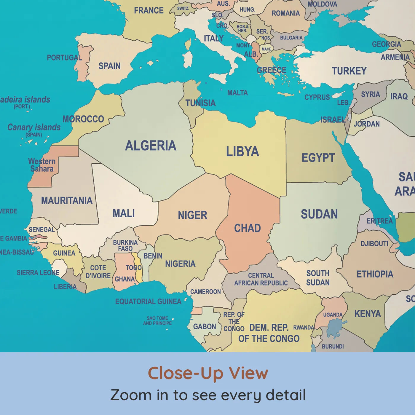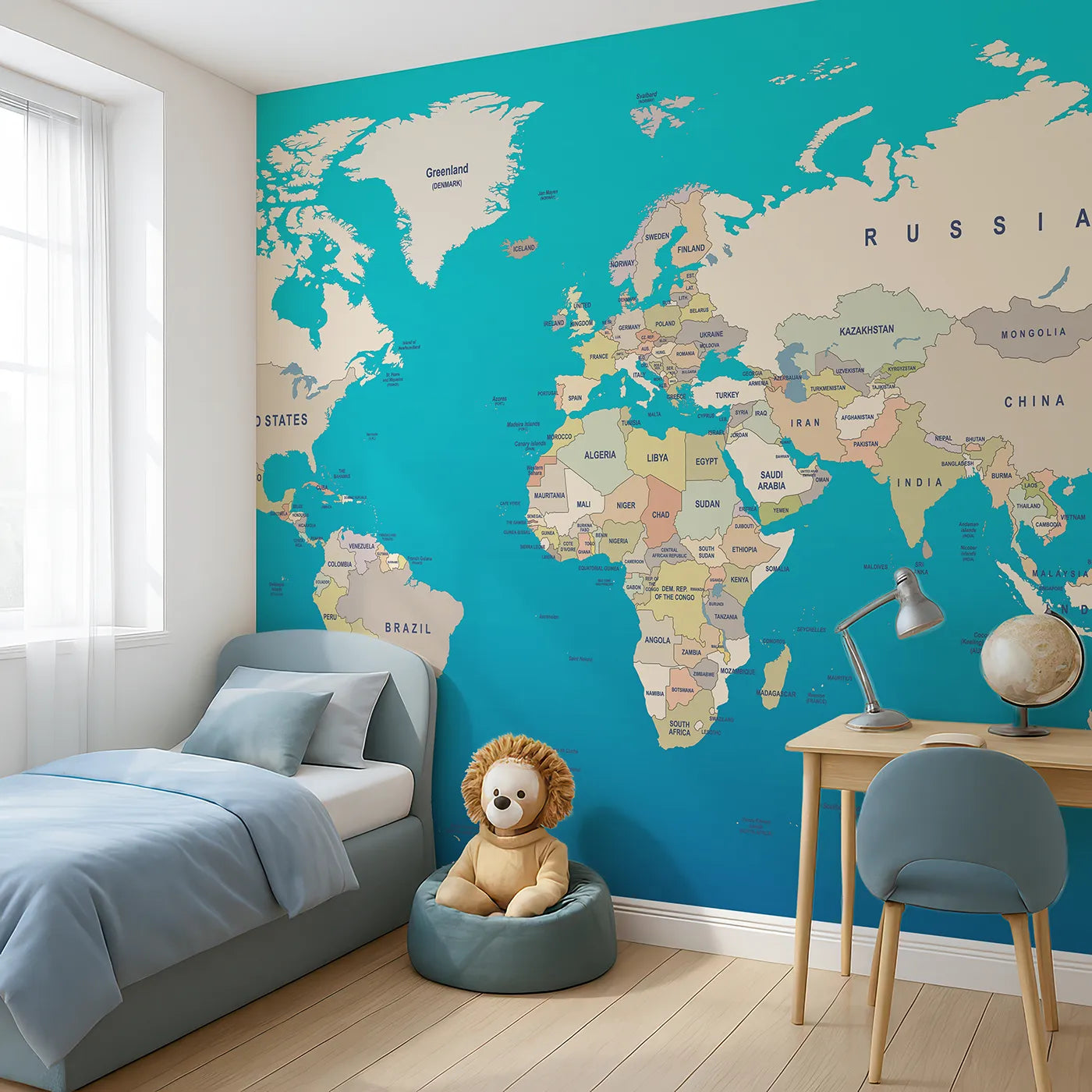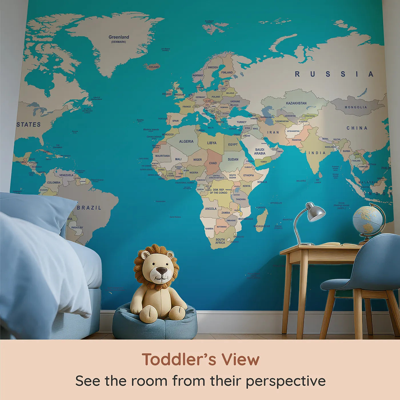 Political World Map Wall Mural - A Bright and Clear Map for Little Explorers