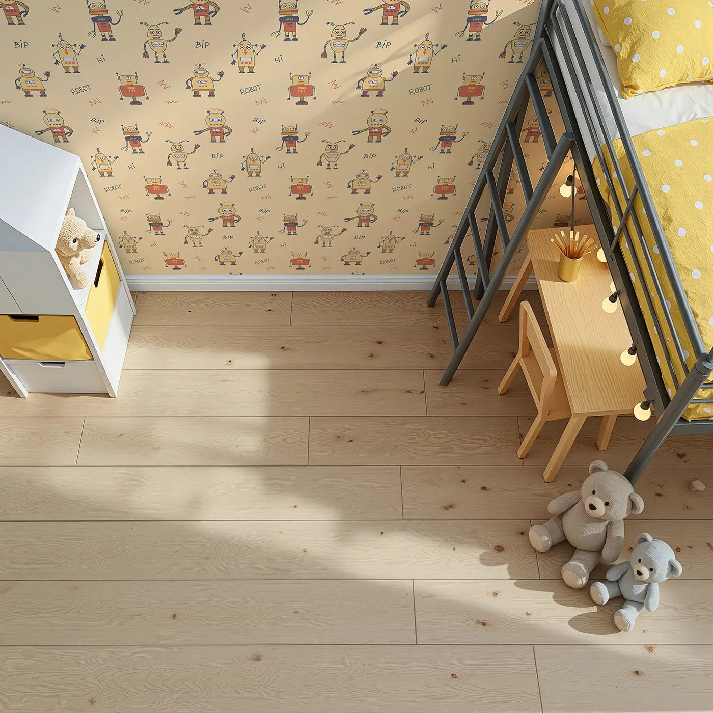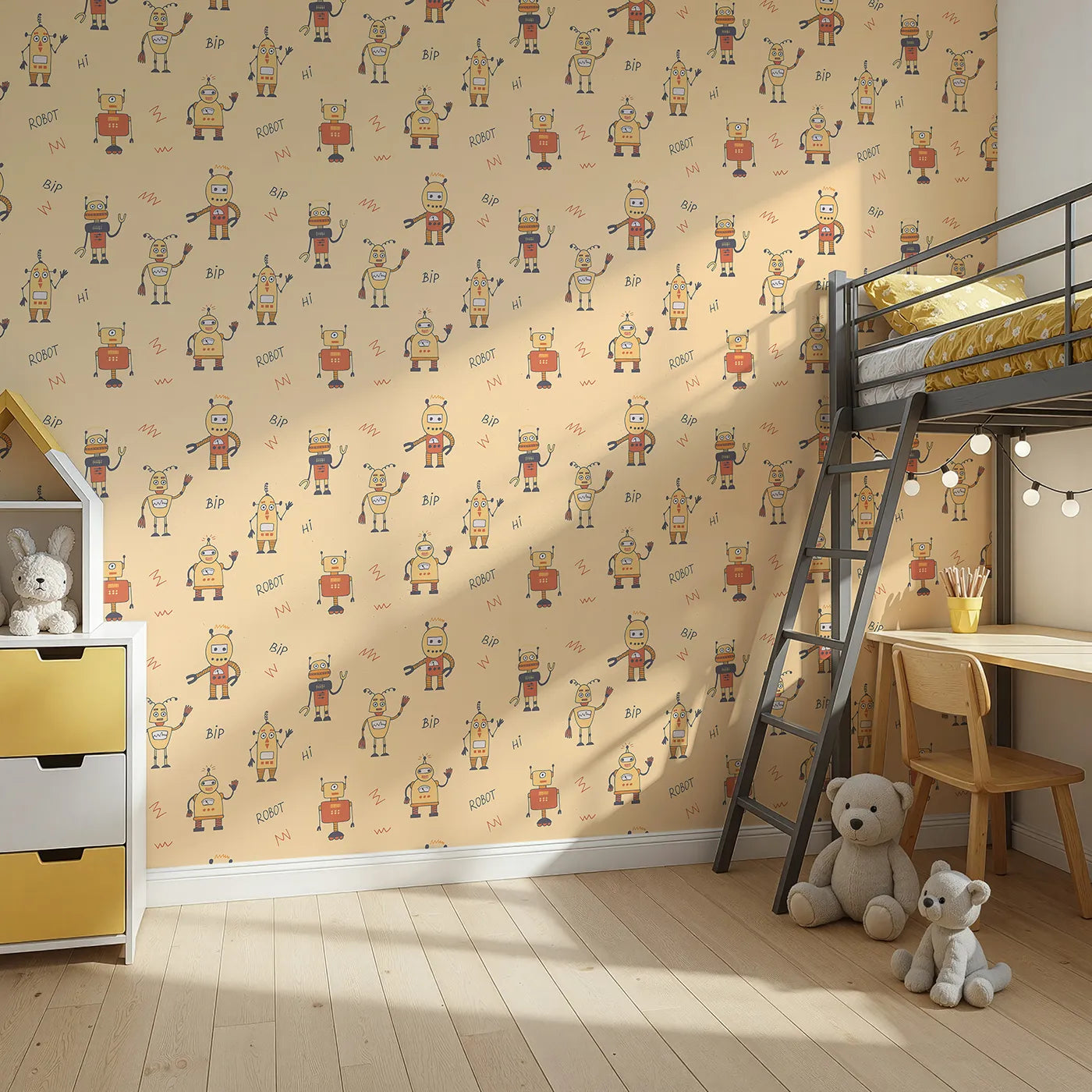 This fun and quirky kids wallpaper is perfect for a little inventor with a love for all things retro. A friendly crew of colorful, doodle-style robots with lots of personality is ready to play. The warm, vintage-inspired color palette adds to the cool, old-school vibe, perfect for a boy's bedroom or a creative playroom.