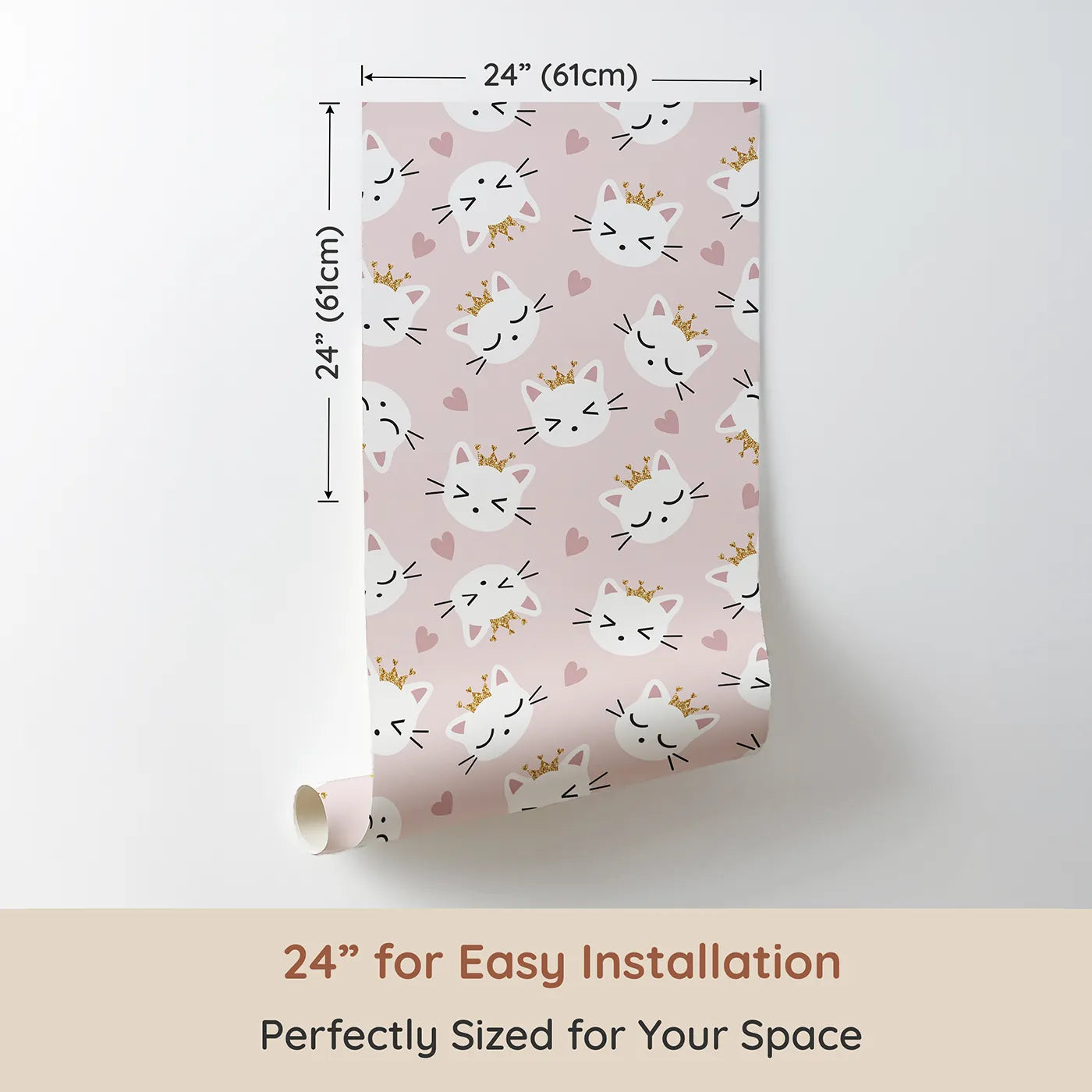Royal Kitty Wink Wallpaper in Pink - A Sprinkle of Royal Cuteness