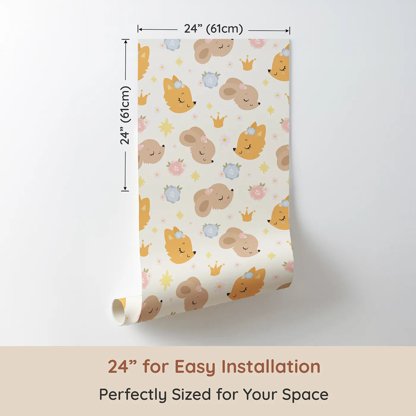 This charming nursery wallpaper features sweet woodland animals on a warm, cream crown background. The neutral color palette and gentle design create a serene and stylish space, perfect for a gender-neutral nursery that feels both modern and timeless.