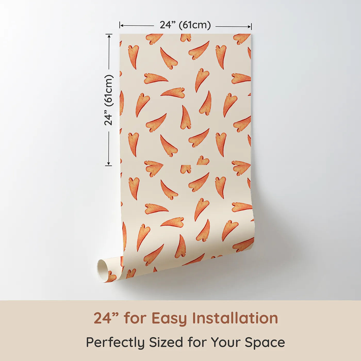 Set a scene of gentle wonder with our heart wallpaper on a warm cream background. The soft, earthy-toned watercolor hearts create a soothing and inviting atmosphere, perfect for quiet moments and imaginative play. This wallpaper brings a touch of timeless, nature-inspired beauty to any child's room.