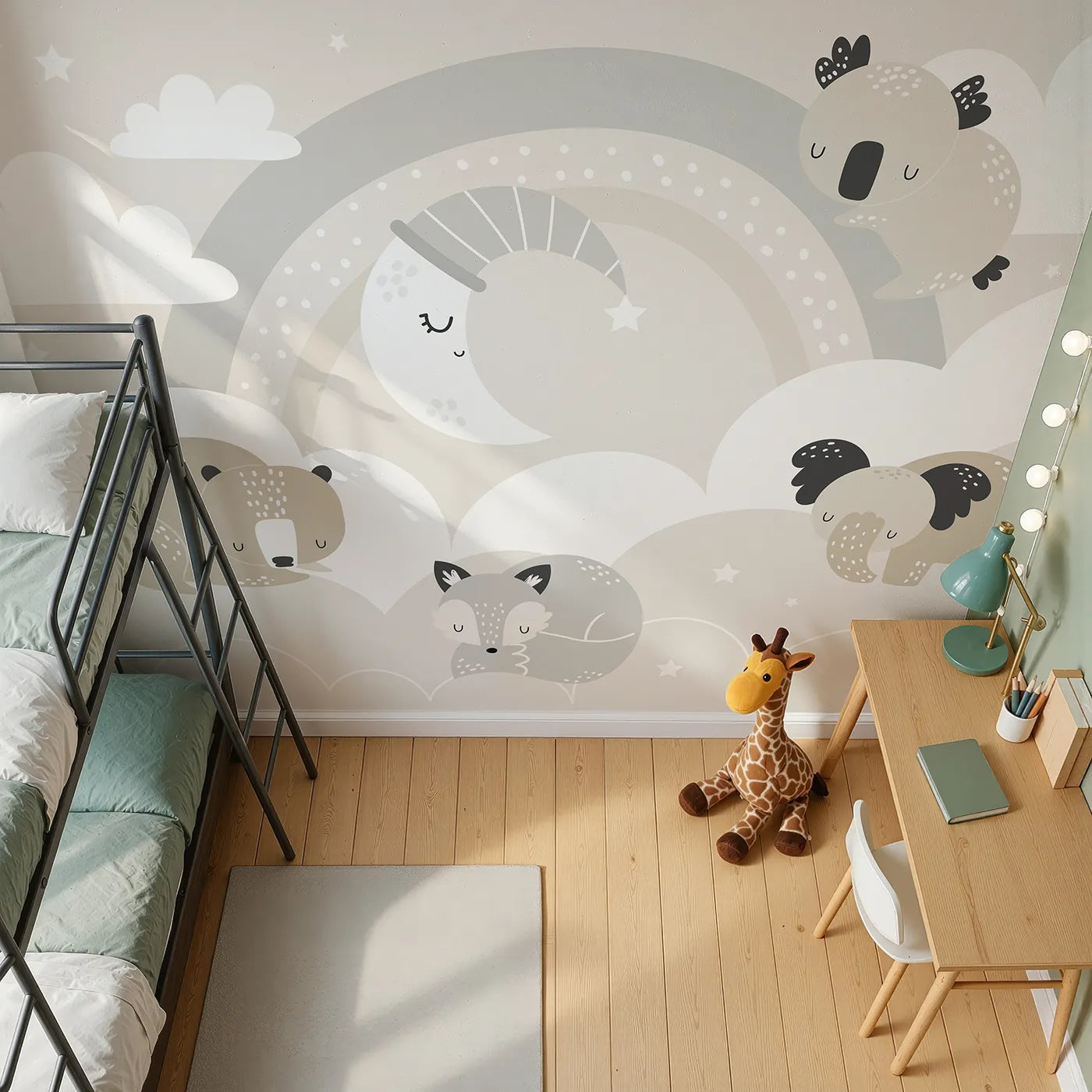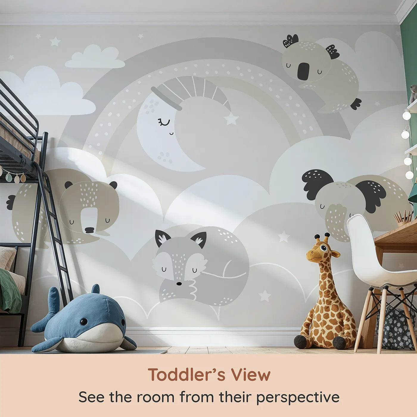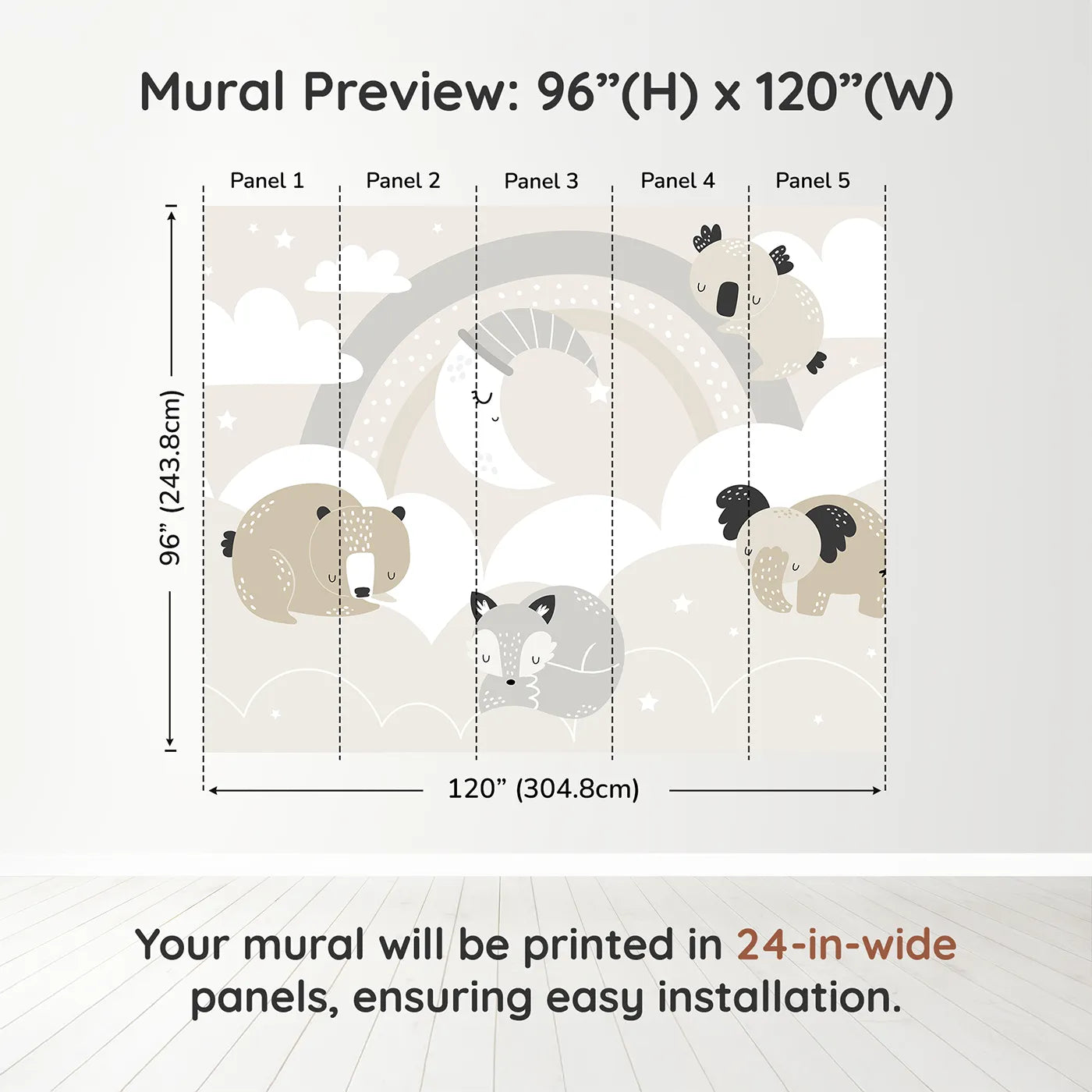 Sleepy Friends Wall Mural - A Dreamy Sky for the Sweetest Slumbers