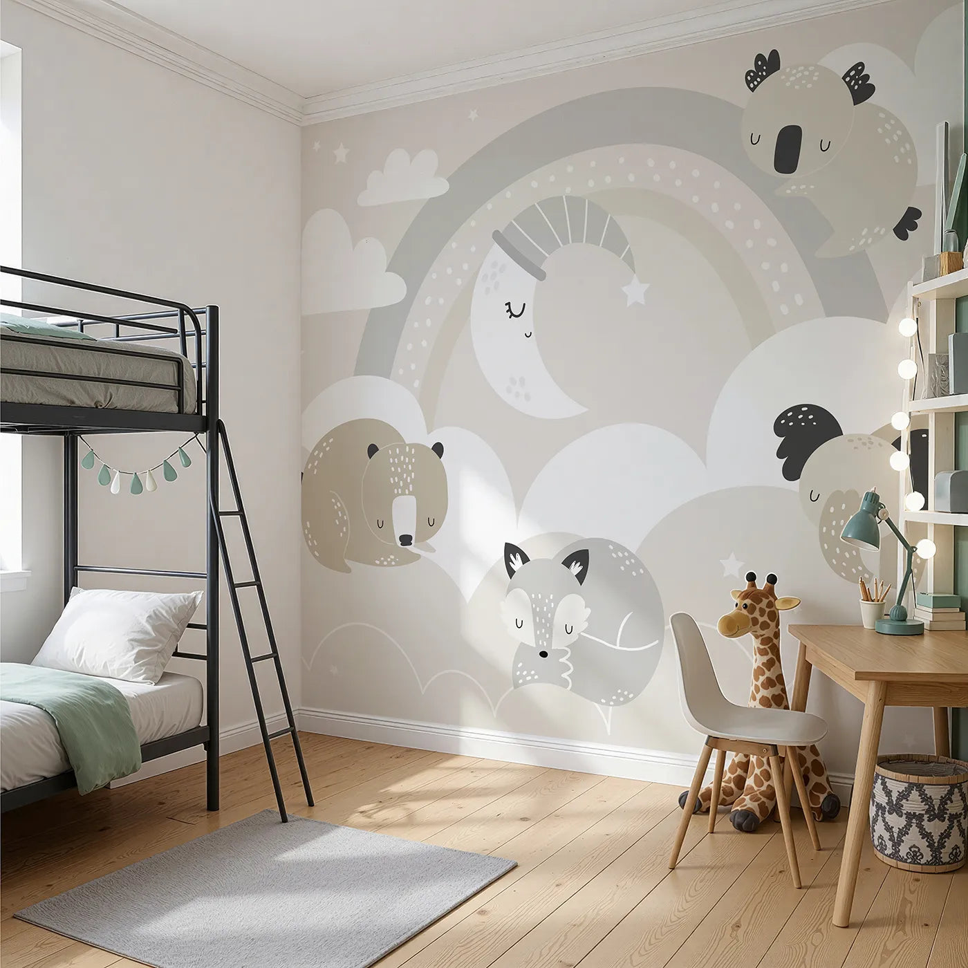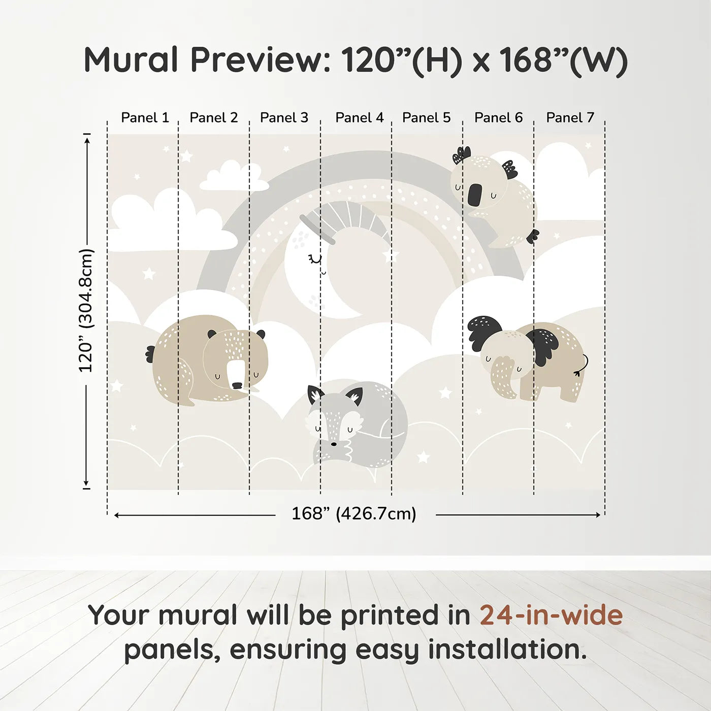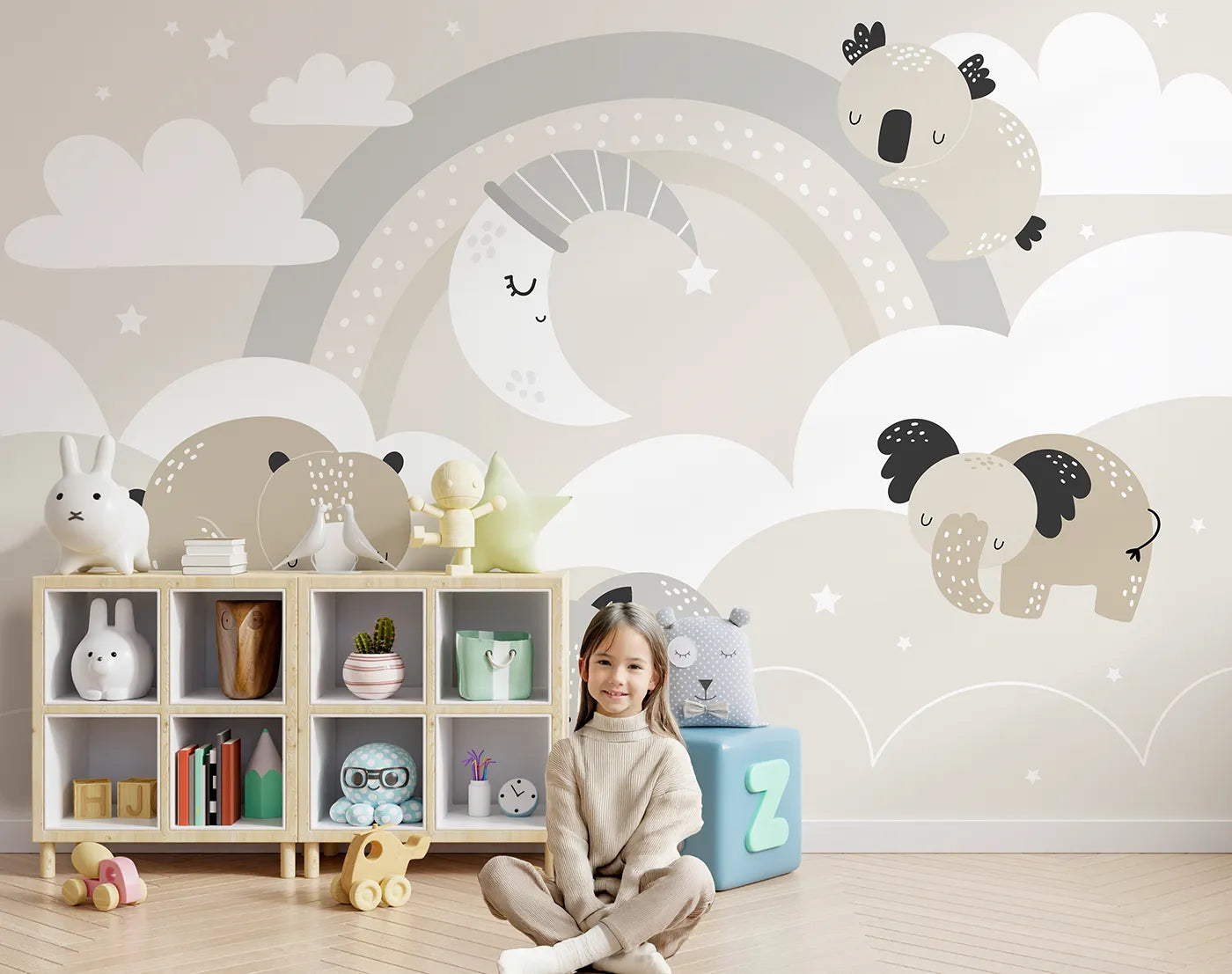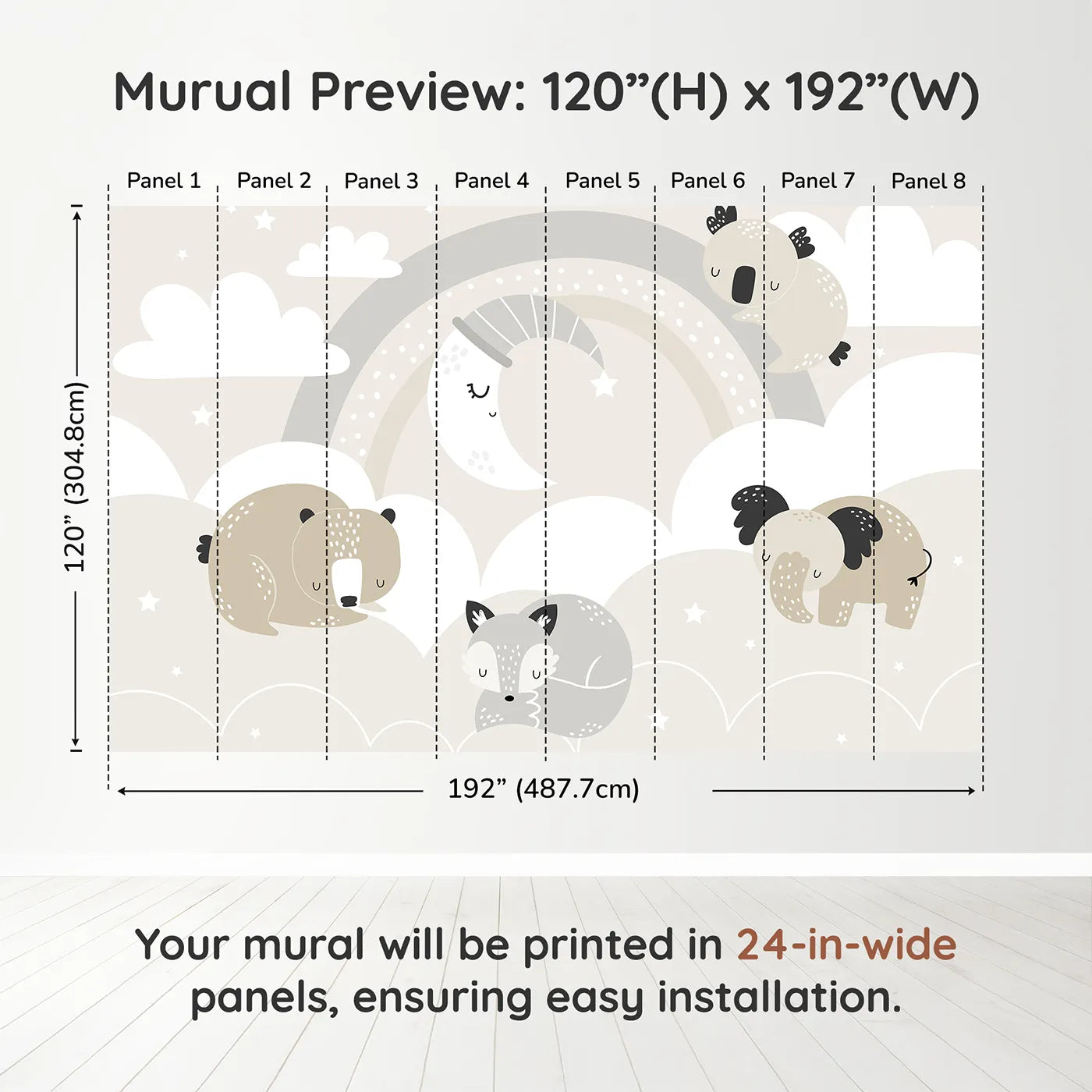 Sleepy Friends Wall Mural - A Dreamy Sky for the Sweetest Slumbers