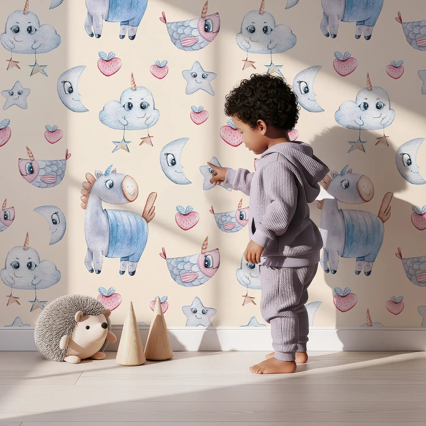 The soft, storybook style of this design brings a timeless warmth to any nursery or playroom. Our renter-friendly, peel and stick wallpaper is crafted for a simple installation, making decorating a joy for busy parents. All our wallpapers are printed with GREENGUAR Gold Certified inks.