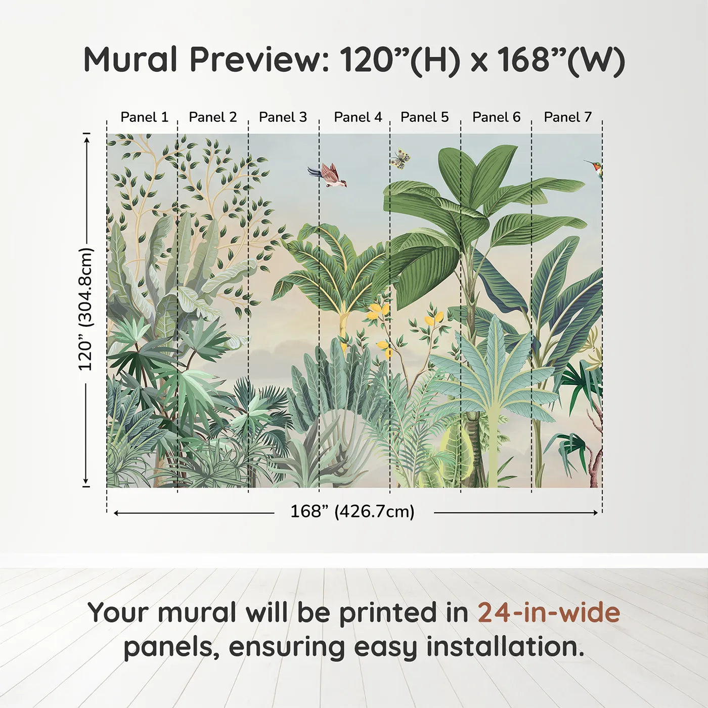 Tropical Bird Garden Wall Mural - An Enchanting Jungle in Hues of Green