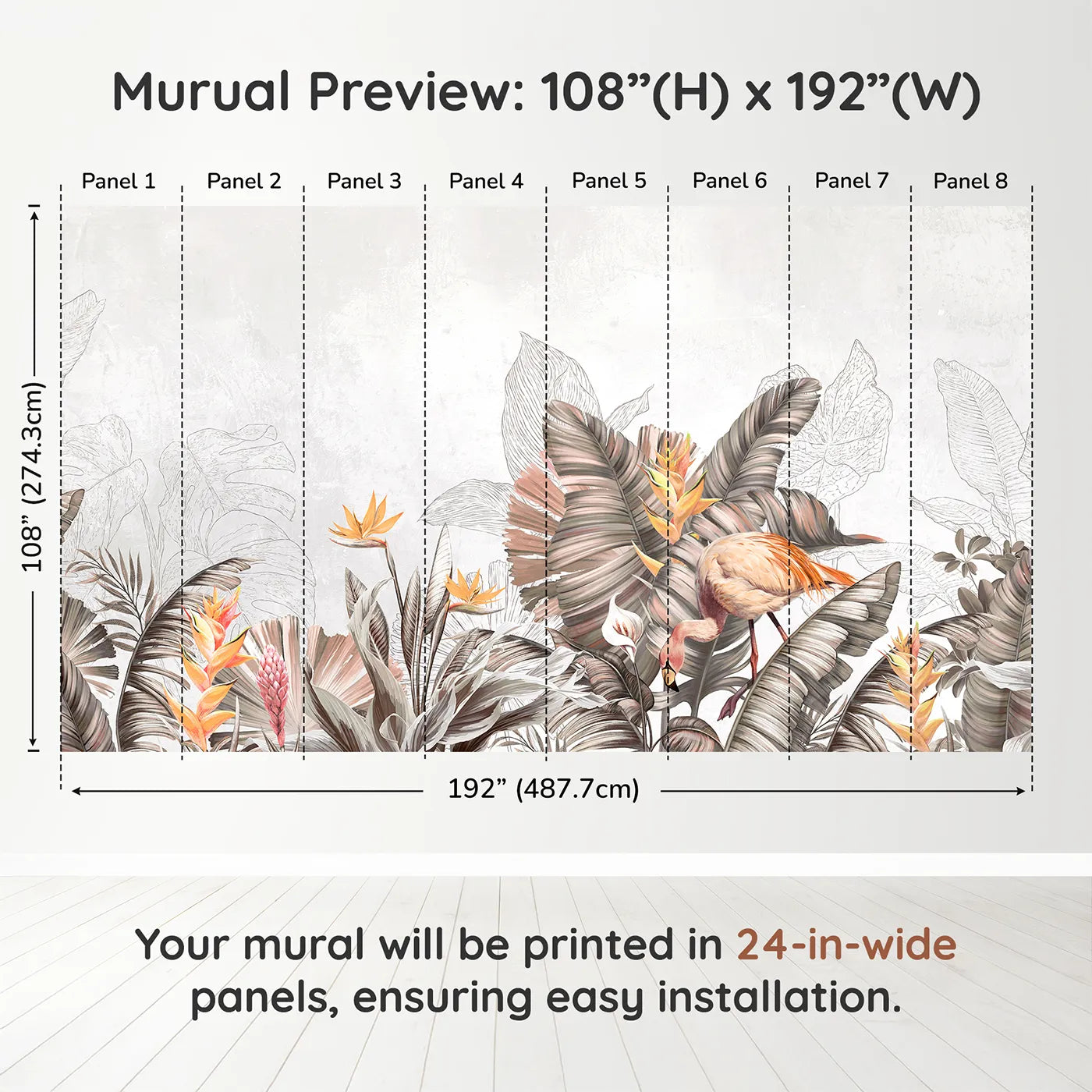 Tropical Flamingo Garden Wall Mural - A Chic and Artistic Tropical Escape