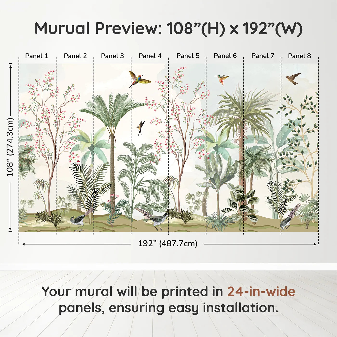 Tropical Garden Wall Mural - A Lush and Leafy Jungle Escape