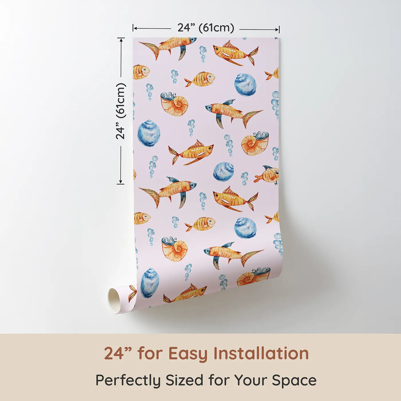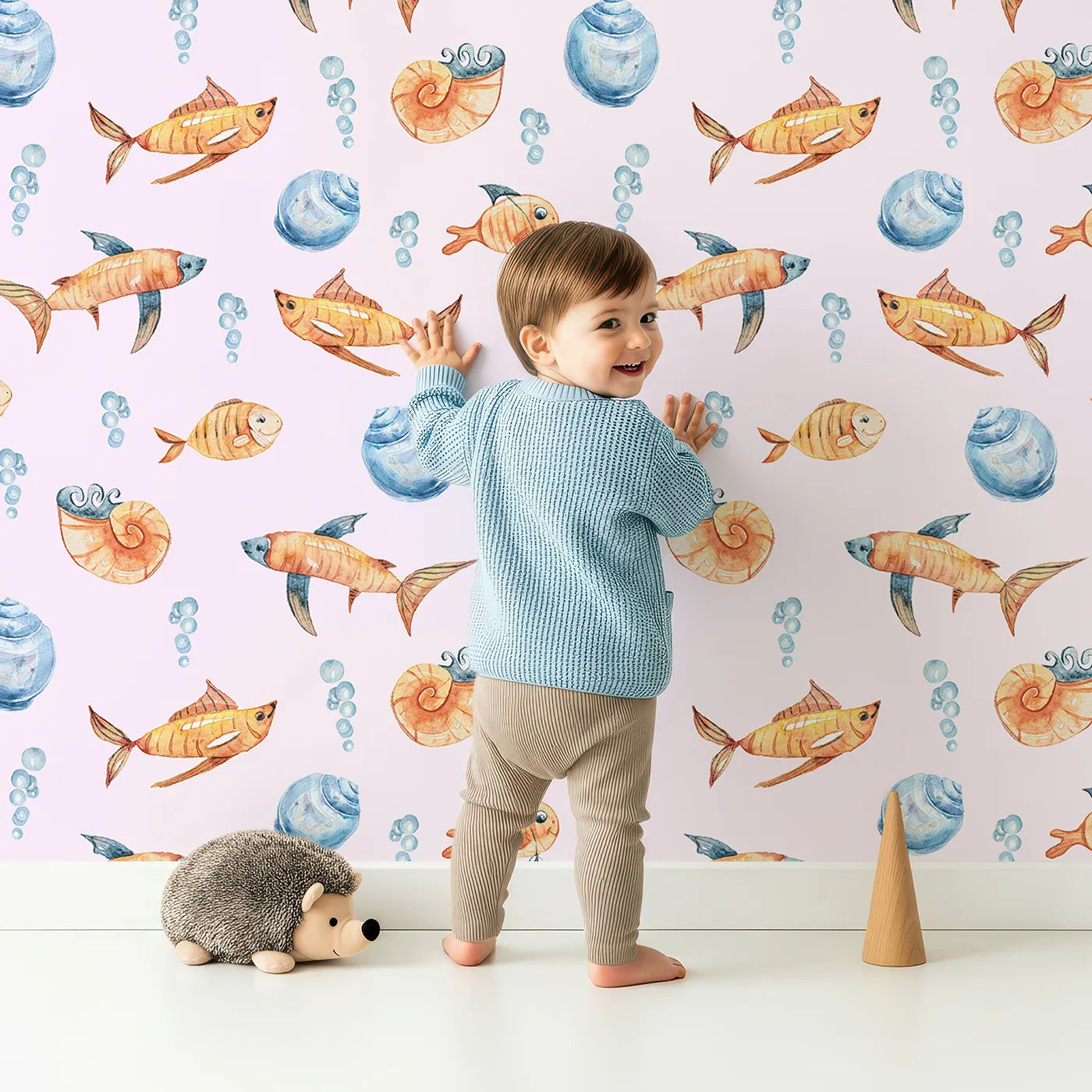 This fun ocean wallpaper brings the bottom of the sea right into their room on a soft pink background! It's filled with charming sea creatures like turtles, whales, and fish floating amongst soft clouds and stars. The sweet watercolor art style creates a dreamy atmosphere for a nursery or playroom.