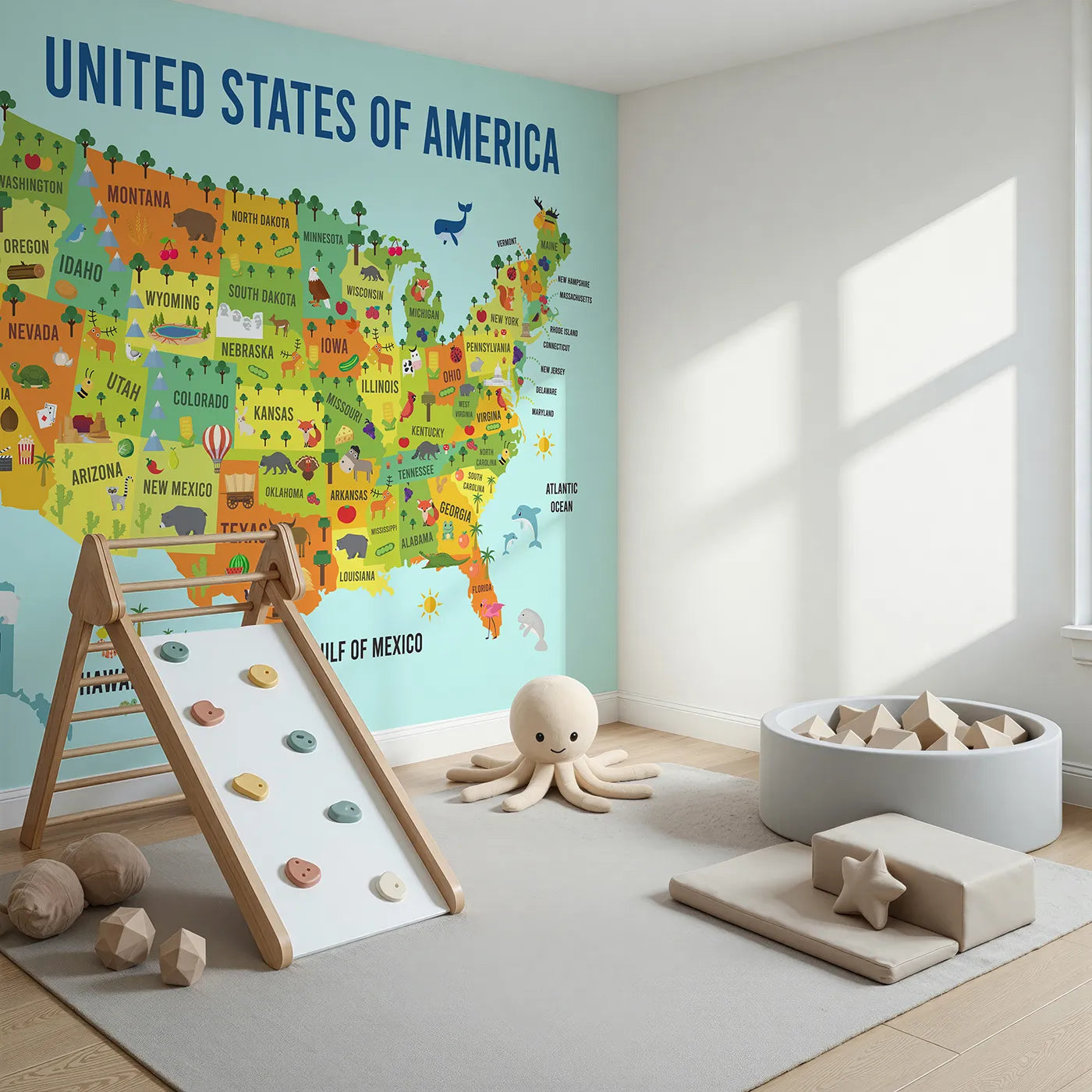 USA Map for Kids Wall Mural - An Exciting Road Trip Across the USA