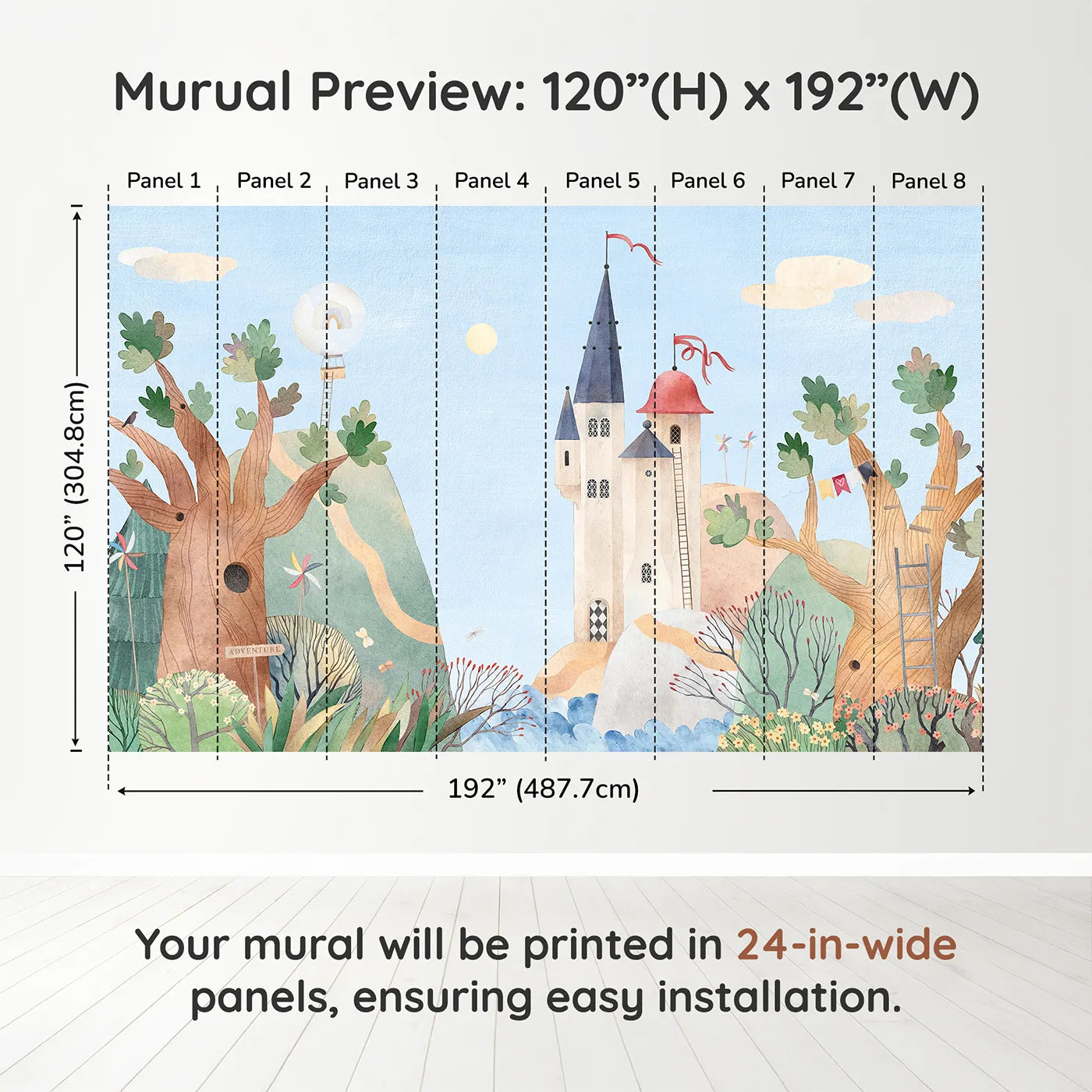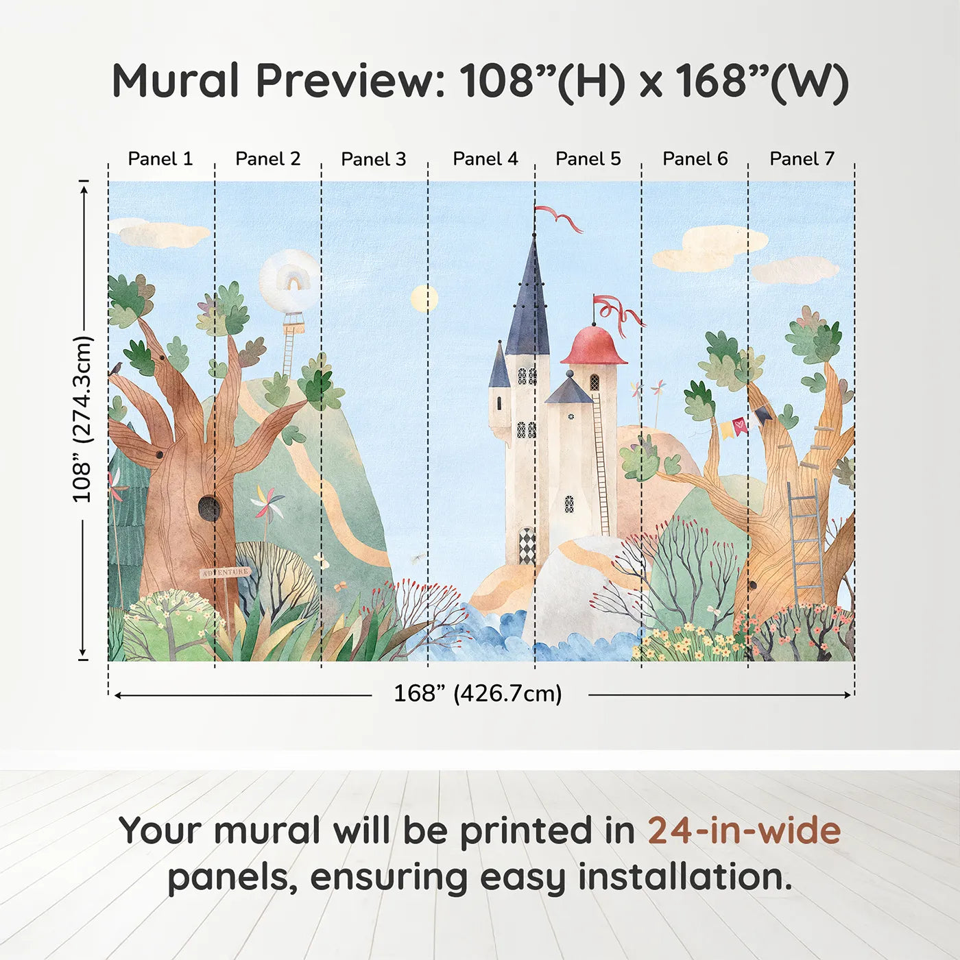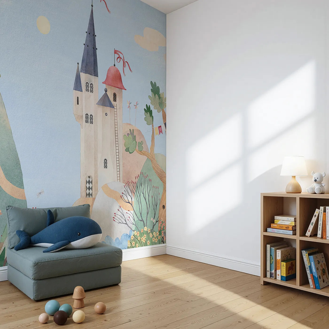 Let their imagination wander through the streets of this magical village. This detailed watercolor wall mural features a charming town of colorful castles and whimsical trees. It's a scene brimming with warmth, character, and stories waiting to be told.