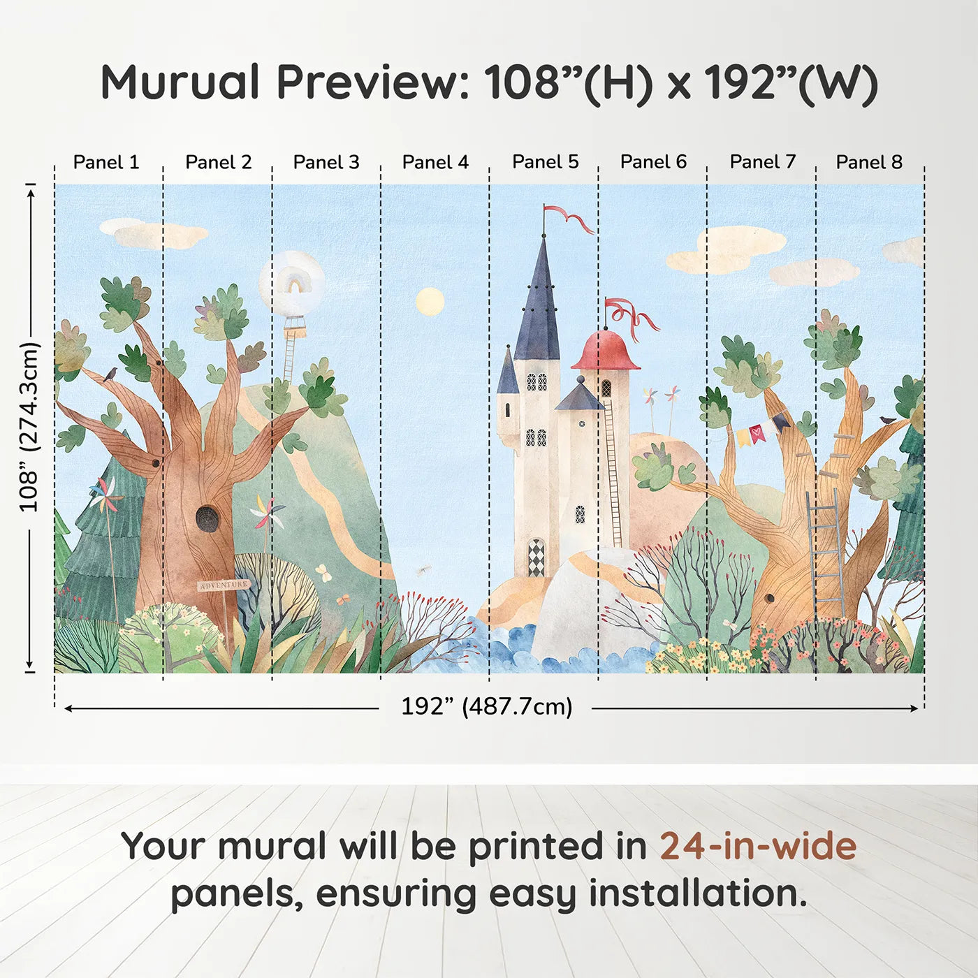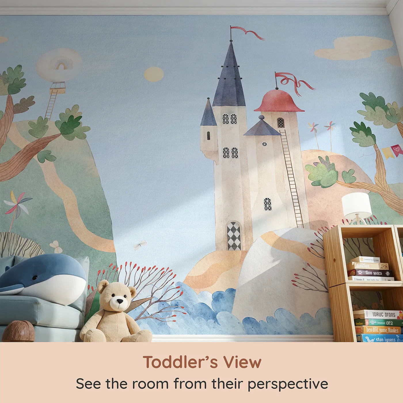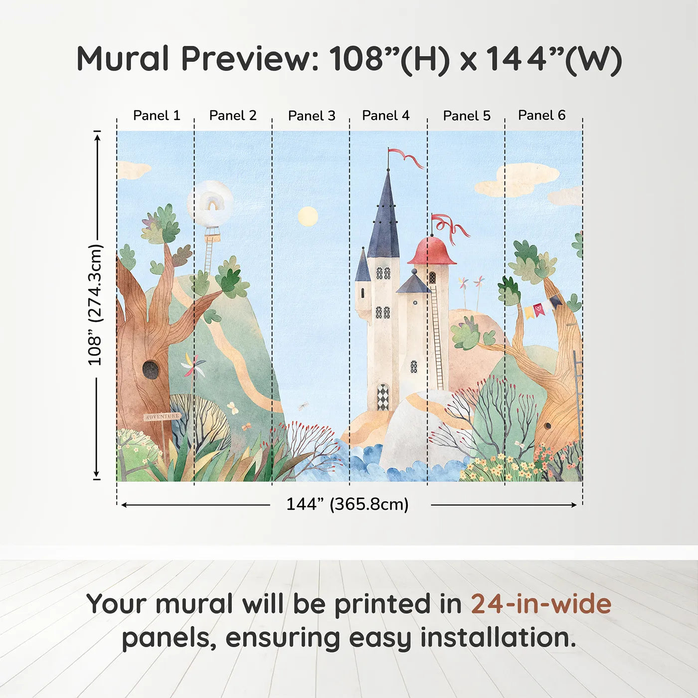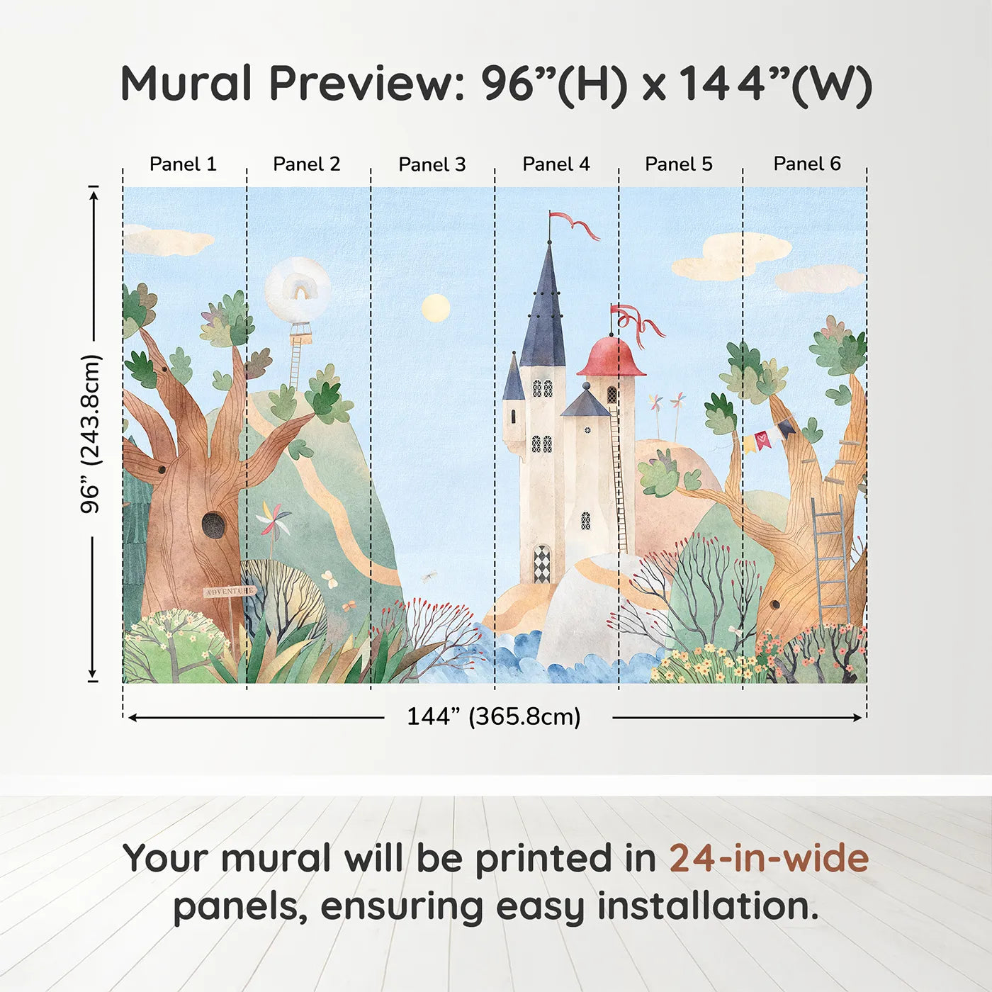 Let their imagination wander through the streets of this magical village. This detailed watercolor wall mural features a charming town of colorful castles and whimsical trees. It's a scene brimming with warmth, character, and stories waiting to be told.