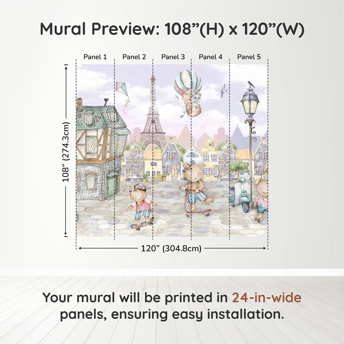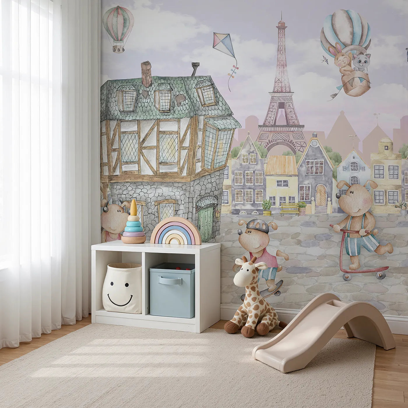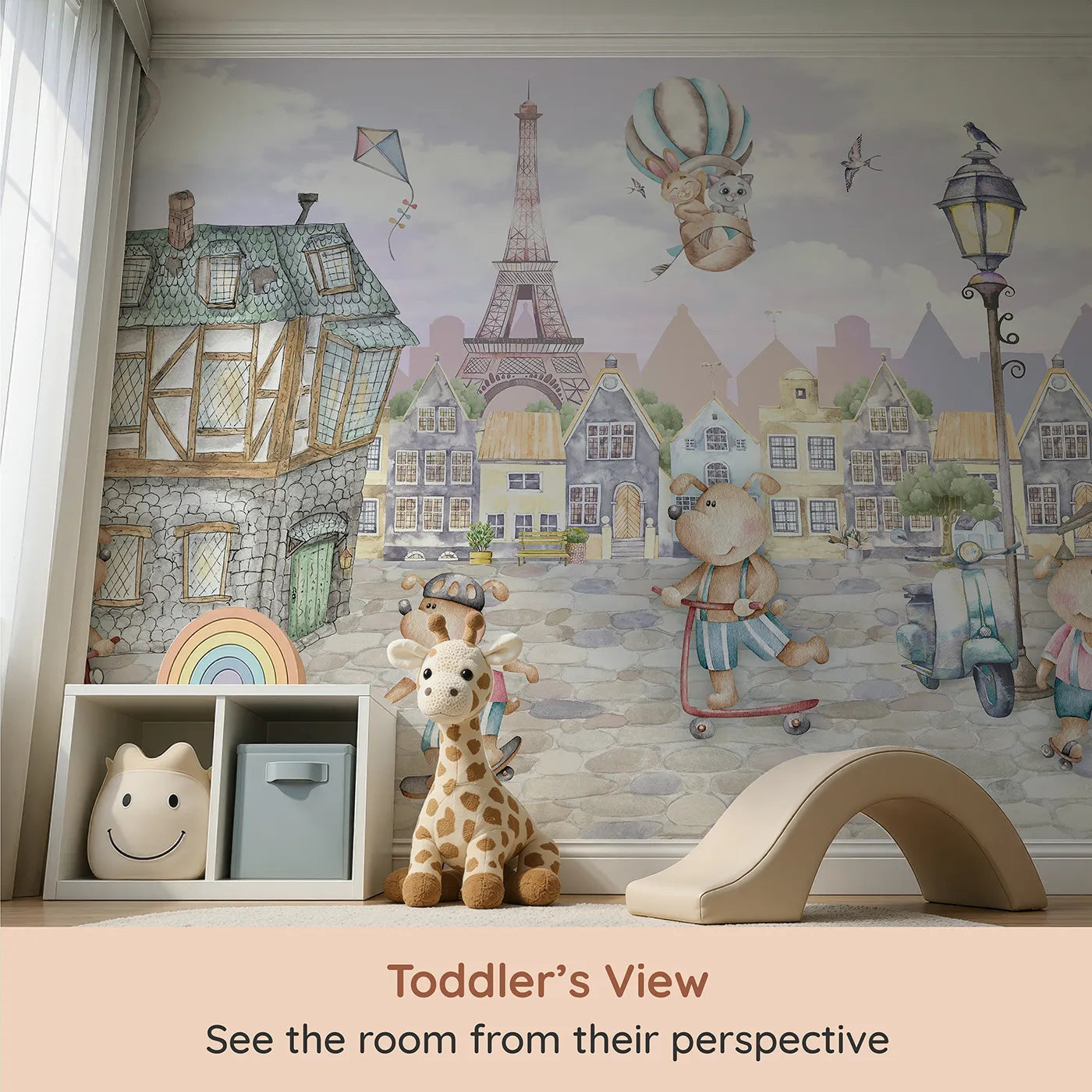 Whimsical Paris Adventure Wall Mural - A Playful Day in a Parisian Dream